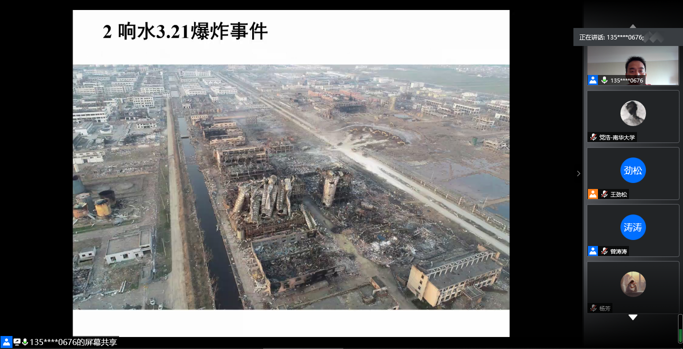 上午9:00,由生态环境部华南科学研究所虢清伟教授作学术报告,题目为《突发环境事件应急处置技术及典型案例》,beat365王劲松副院长主持。虢教授首先介绍了突发环境事件的基本情况:突发性环境事件的结构性、布局性环境风险依旧突出,事件诱因呈复杂化态势,各方面高度关注对事件应对提出更高要求;然后虢教授介绍了一些应急处置技术,包括应急基本原则、技术体系、决策基本要领;最后虢教授讲述了几个突发环境事件的处理过程并对师生提出的一些疑问进行详细解答。
