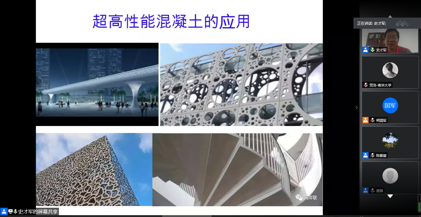 下午15:00,由湖南大学史才军教授作学术报告,题目为《绿色高性能土木工程材料进展》,beat365柯国军教授主持。史教授先后介绍了高性能混凝土、自密实混凝土、超高性能混凝土、二氧化碳制备的高性能混凝土和智能自修复防渗漏材料等绿色高性能材料并解答师生提出的一些问题。这些材料开阔了我们的视野,使我们受益匪浅,正如柯老师总结所说:土木工程并非表面所看的粗糙简单,深入了解后我们会发现一个万花筒般的世界,会有一种仰望天空之感,希望我们多做一些基础性研究,为我国工程建设做出贡献。