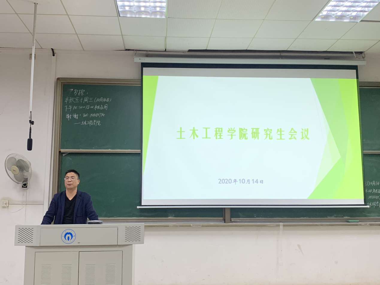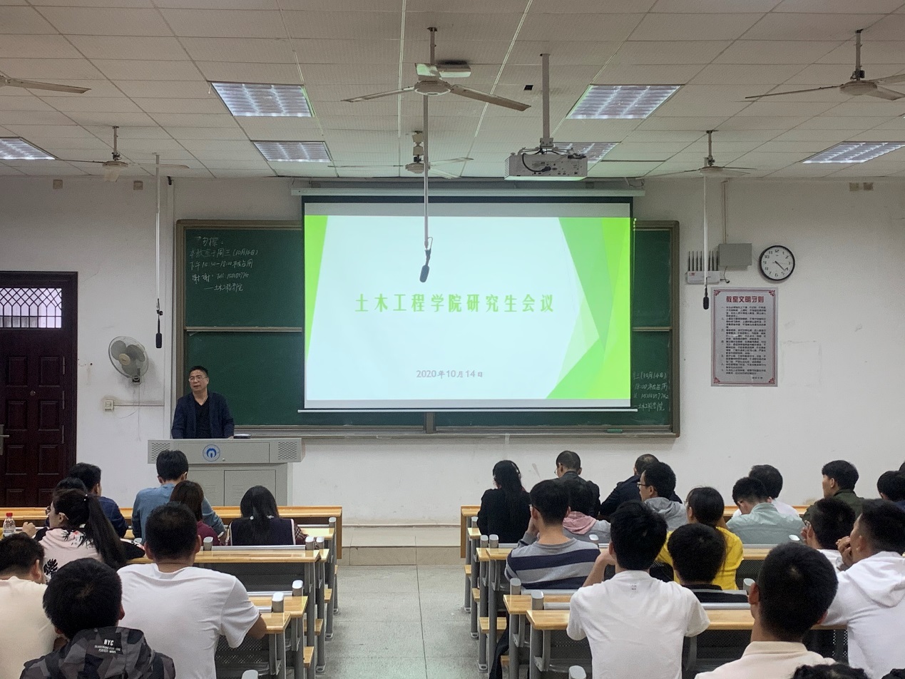 2020年10月14日下午4:20,在beat365亚洲版官网第9教学楼601教室召开了土木工程学院研究生会议。会议由王劲松副院长主讲,院全体研二、研三同学及各方向负责老师参加会议。