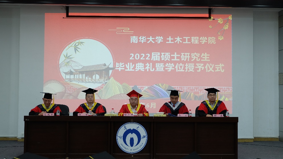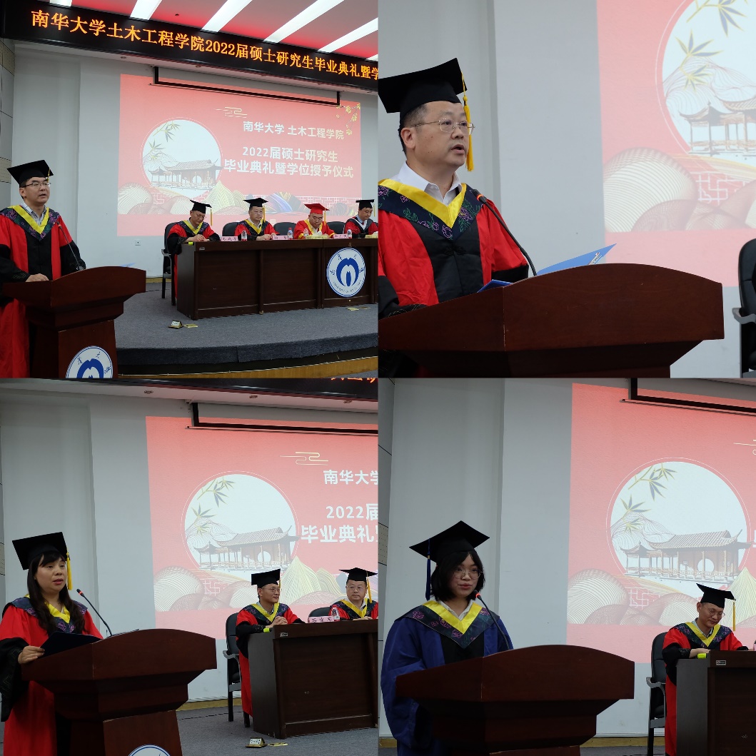 庄严的国歌奏唱完毕,石书记宣布“beat365亚洲版官网土木工程学院2022届硕士研究生毕业典礼暨学位授予仪式”正式开始。会上,研究生院李乐院长宣读了学校授予硕士学位的决定,并宣布本批次土木工程学院授予学位人数共计90人。接着谢东院长发表了热情洋溢的致辞,他代表学院衷心祝贺同学们顺利完成学业,同时对毕业生提出了殷切的希望,让全体毕业生感受到了母校的关怀和温暖。紧接着优秀硕士毕业生代表孔圆同学发言,她总结了这三年学习生活中所面对的挫折和收获并感谢一路同行的导师和同学们。随后教师代表孙冰发言,她指出beat365亚洲版官网土木工程学院不断发展壮大,是每一位老师和同学辛勤付出的结果,希望南华学子做到:对家国的热爱;对使命的担当和对目标的脚踏实地。接下来校友代表谢军董事长发言,他以自身经历告诉大家要系好自己人生的“扣子”就要把自己的命运与国家联系起来、把自己的发展与母校联系起来、把自己的修养与家庭联系起来、把自己的前途与企业联系起来。最后郑卫民副校长发表讲话,他恭喜毕业生顺利完成学业,真诚地感谢毕业生所做出的成果和老师的默默付出,郑校长深情地告诉毕业生们要谨记beat365亚洲版官网“明德、博学、求是、致远”的校训;毕业是新起点,是加油站,他鼓励毕业生们继续为自己的理想为中华民族伟大复兴的中国梦奋斗下去。发言结束后,同学们身着学位服依次登上主席台,领导和导师们为他们一一拨流苏,合影留念。最后毕业生回到座位并在激扬的旋律声中,唱响了beat365亚洲版官网校歌。仪式最后一项集体合影,全体师生移步图书馆门口,毕业生们把自己最美的三年定格在了这一刻,为自己交出了一份满意的答卷。