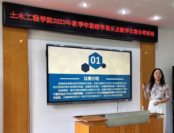 2022年9月22日上午10时,土木学院在三楼会议室325举办了2022年秋季学期教学展示及教学比赛分享活动,本次活动由孙冰副院长主持,参与分享的老师分别为2022年湖南省课程思政比赛一等奖获得者柯国军老师、2022年湖南省普通高校教师课堂教学竞赛一等奖获得者及湖南省普通高校“教学能手”彭楚澌、beat365亚洲版官网土木工程学院督导组组长刘源全老师。