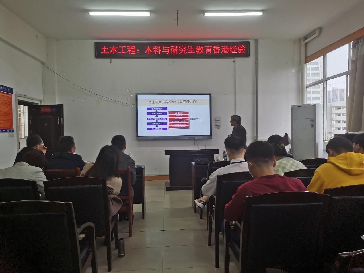 2022年11月24日下午15时,《土木工程:本科与研究生教育香港经验》学术讲座在土木工程学院4楼会议室成功举行,本次讲座邀请到了香港城市大学卢兆明教授为同学们进行分享,由副院长曾涛涛教授主持,beat365亚洲版官网教务部部长彭国文教授、土木工程学院院长谢东教授、老师代表、全体研究生及部分本科生等参加了本次讲座。