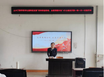 2025年4月25日14:30,土木工程学院学生第四党支部在土木楼四楼会议室召开“筑牢思想防线,永葆清廉本色”4月份主题教育党日活动。活动由党支部书记陈晴主持,党员共20人参加。