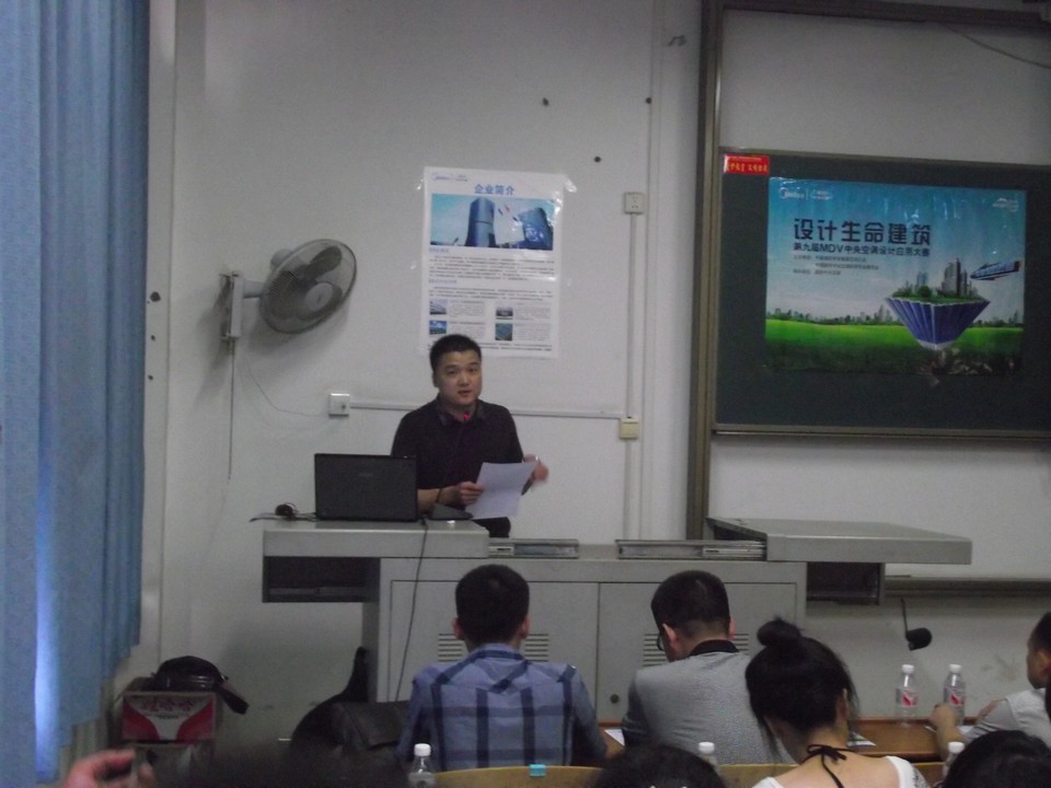 6月17日下午,第九届MDV中央空调设计应用大赛南华站推广活动在我校一教106教室拉开帷幕。beat365亚洲版官网城市建设学院副院长陈刚教授、衡阳美的公司总经理李刚、beat365亚洲版官网建环专业罗清海教授等嘉宾出席,近200名学生和省内媒体记者参加,会议由衡阳美的公司市场部专业推广员刘明雄主持。 推广会开始前,教室已经座无虚席。“MDV中央空调设计应用大赛”由中国建筑学会暖通空调分会、中国制冷学会空调热泵专业委员会主办,美的中央空调协办,已经成为中国暖通空调行业的“奥斯卡”。会上,李经理首先介绍了大赛的有关事项与发展历史。大赛从2002年开始已经成功举办了八届,而今年首次进入南华推广。随后陈刚副院长发表了讲话,他概述了我校相关专业的文化历史、专业人才的培养,陈院长希望大家注重能力培养,把握此次锻炼的机会。接着进行现场答疑交流,整场推广会现场气氛热烈,现场同学踊跃发言提问。最后推广会在全场热烈的掌声中结束。 MDV英文缩写原为美的中央空调多联机。本次大赛以“设计生命建筑”为主题,倡导“节能低碳”,秉承“公平、公正、公开”的原则,分为专业组、经销商组、M-Home家装组和学生组,并设总奖金达45.8万。大赛自4月12日在顺德开幕,通过全国范围内征稿、层层筛选、评审,将于今年11月公布结果。 MDV大赛为优秀的建环人才提供了广阔、专业的舞台,同时也是对学生能力的锻炼与肯定。期待南华学子在大赛的激烈角逐中一展风采!