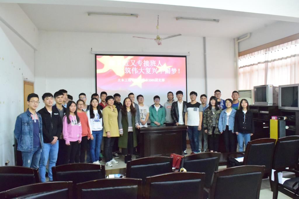为响应习近平总书记在全国高校思想政治会议上的重要讲话,深入学习贯彻落实党的十八届六中全会精神,由土木工程学院给排水1501班团支部举办与组织的“做又红又专接班人,筑伟大复兴中国梦”主题班会于4月26日下午在土木楼四楼会议室顺利召开。土木工程学院党委副书记唐素芝、第一党支部书记兼给排水与建环专业辅导员贺淑珍、给排水1501班全体同学参与了此次主题班会,会议由给排水1501班团支书李悦主持。