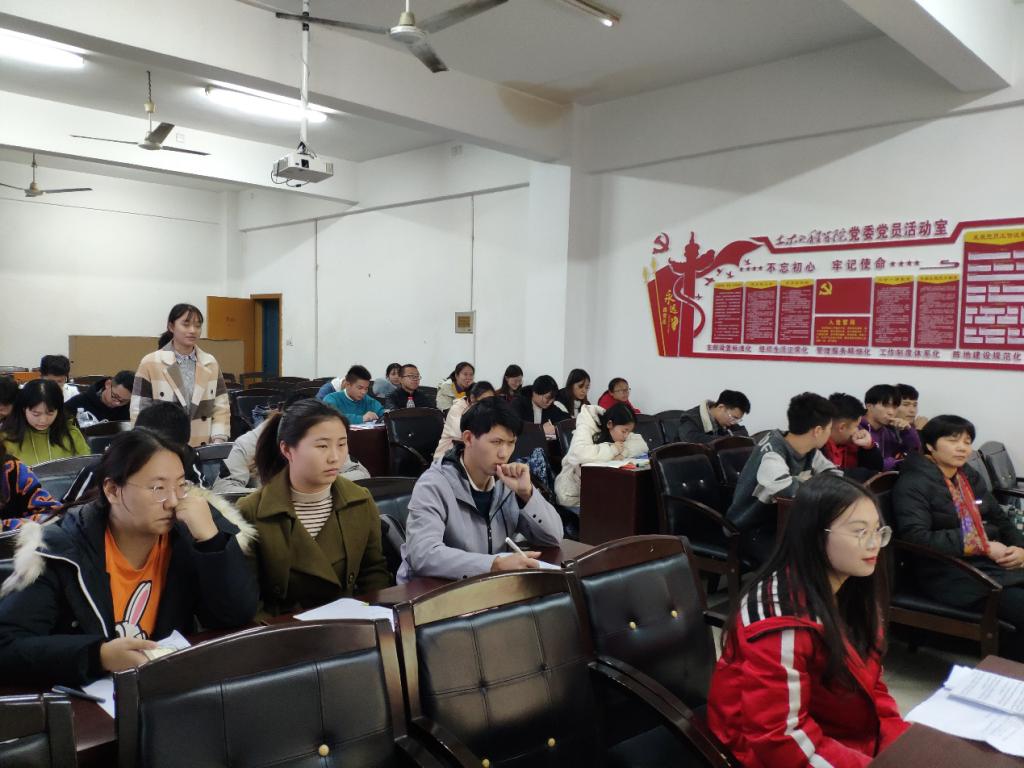 2019年12月13日16:30, 土木工程学院给排水科学与工程专业和建筑环境与能源应用工程专业学生党支部在土木楼四楼党员活动室召开了接收预备党员会议,党支部全体党员以及玉旭日、方悦等17名同志参加会议。会议由袁彬同志主持。