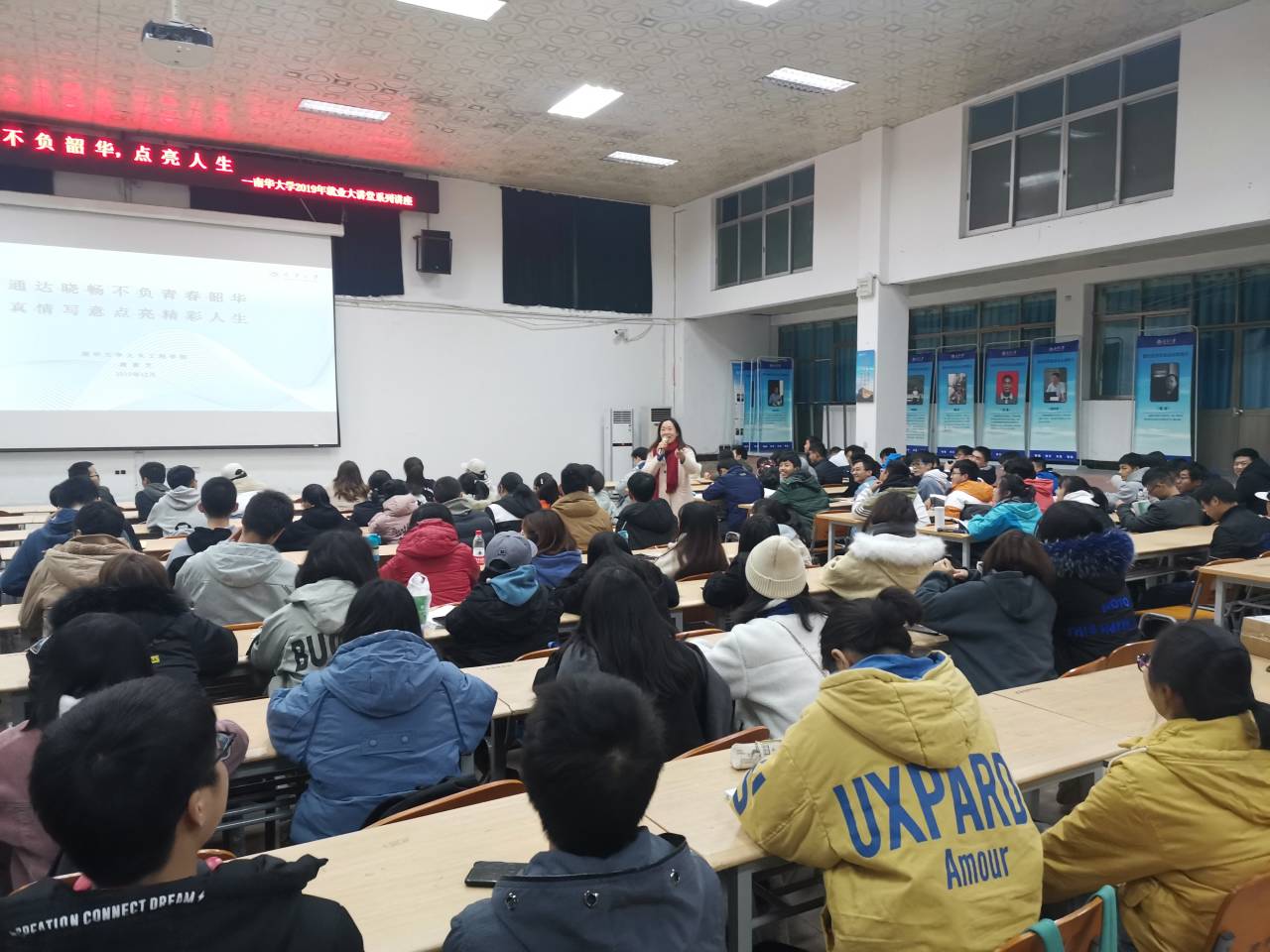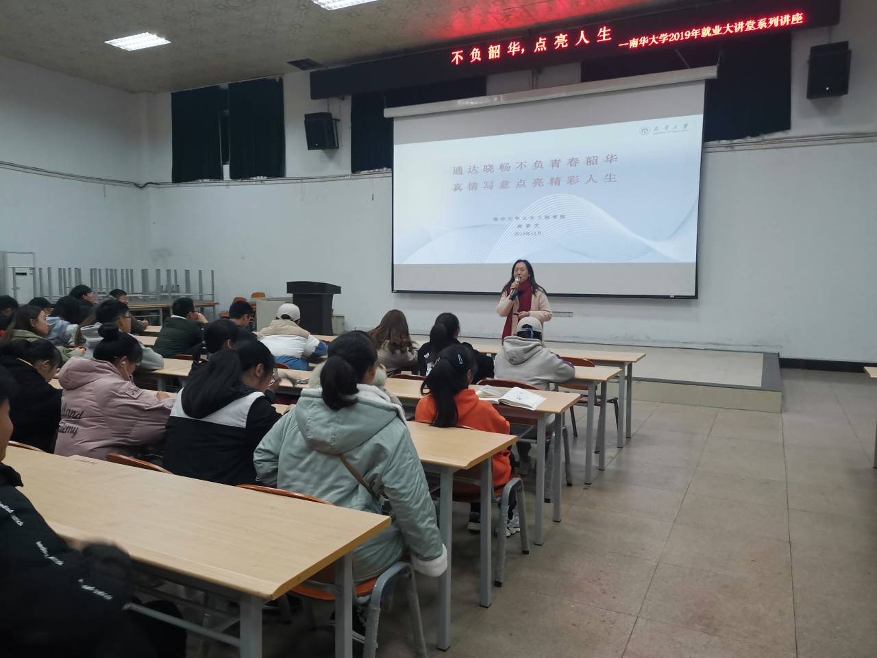 2019年12月18日晚七点半,土木工程学院党委副书记唐素芝于红湘校区南校就业大厅一楼开展了以笔试、面试资料准备与应对技巧为主题的就业大讲堂第七期系列讲座。此次讲座的标题为“通达晓畅不负青春韶华,真情写意点亮精彩人生”。