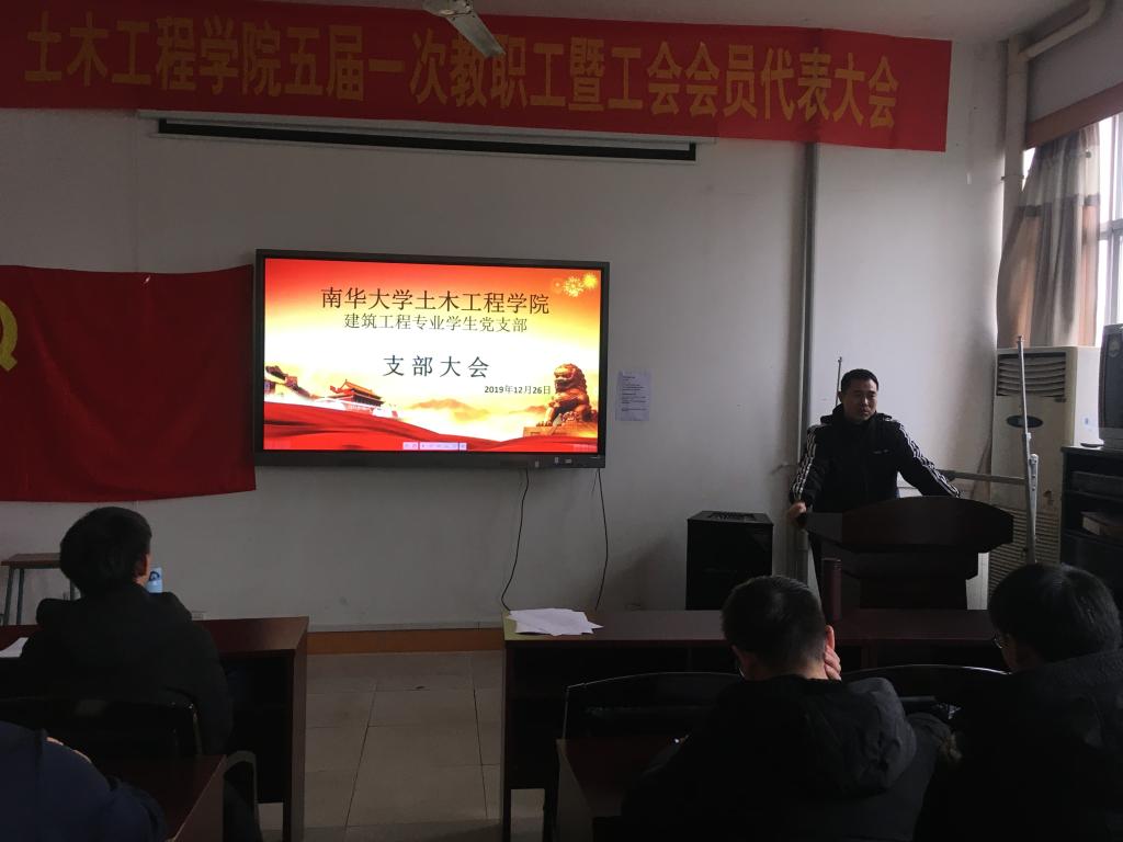 2019年12月26日下午14:30,土木工程学院建筑工程专业学生党支部在土木楼四楼会议室召开预备党员转正大会,与会人员有学院党委副书记唐素芝,建工专业学生党支部书记彭兴明以及建筑工程专业学生党支部全体学生党员。会议由段晓晨同志主持。