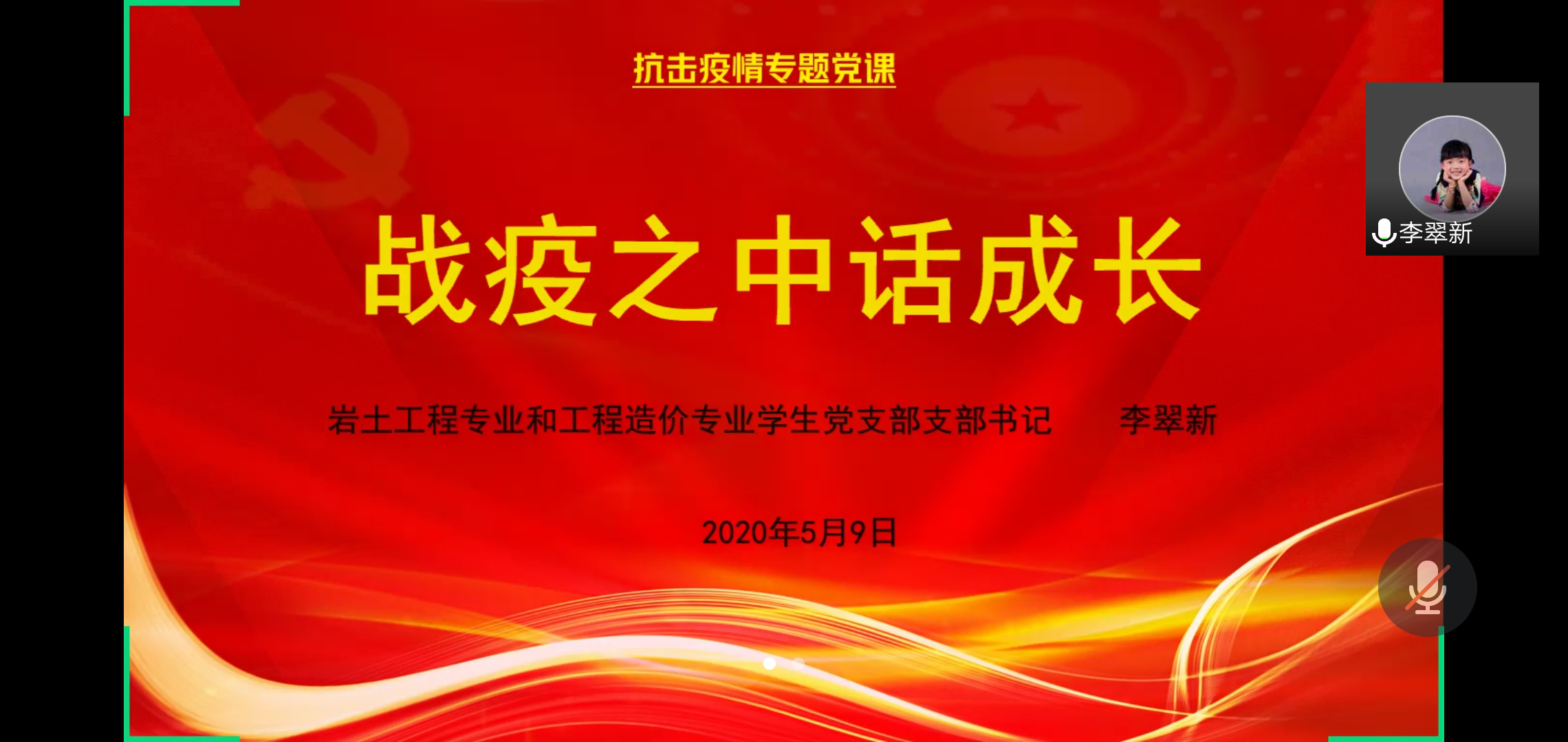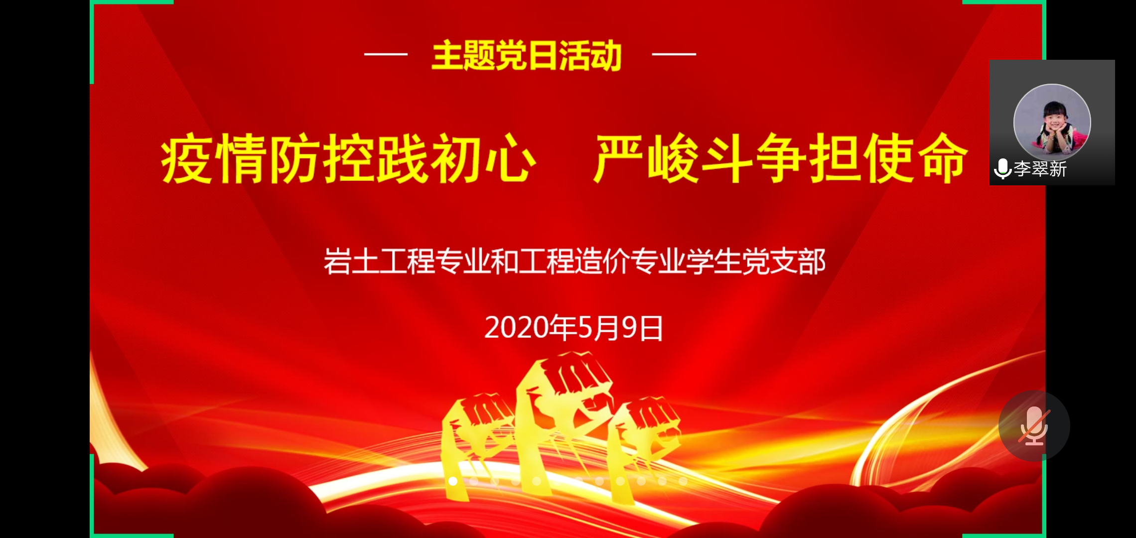 根据省委组织部《在统筹推进疫情防控和经济社会发展中当先锋、作表率、展作为的倡议书》的精神指示和学校党委、院党委的工作安排部署,2020年5月9日下午,土木工程学院岩土工程专业和工程造价专业学生党支部通过腾讯会议平台开展“疫情防控践初心,严峻斗争担使命”线上主题党日暨专题党课学习活动,活动由支部书记李翠新老师主持,支部全体党员参加。