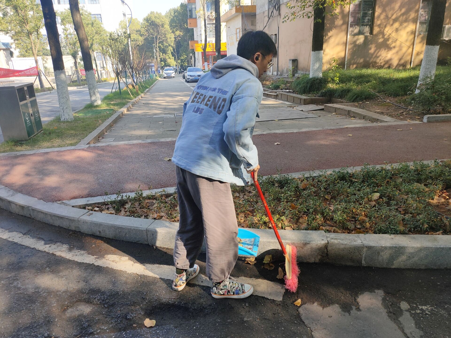 同学们带上清扫工具,准时到达劳动区域。在明确此次义务劳动的目的及意义后,就事先安排的负责区域进行打扫。劳动期间,大家干劲十足,彼此协作、互帮互助,同学们忙碌的身影成为了一道亮丽的风景线。经过一段时间的辛勤劳动,清扫活动进入尾声,同学们再次聚集,共同分享心得体会。