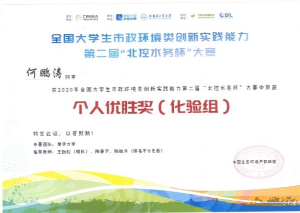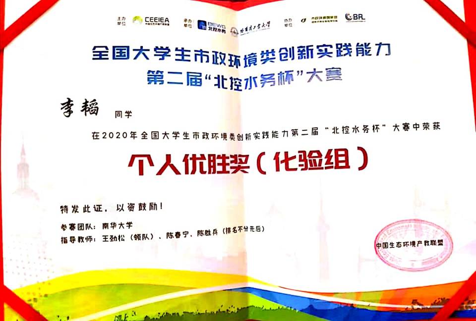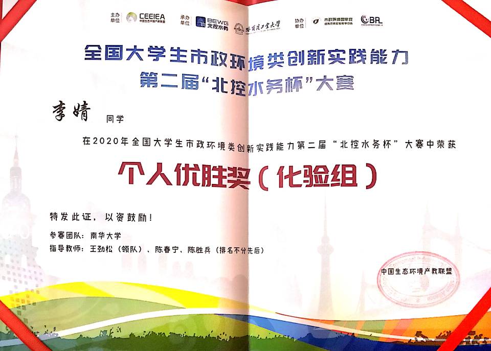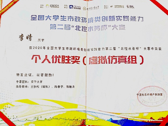 本次竞赛的举办考验了学生实验基本功操作,培养虚拟仿真系统中对模拟的实际水处理中的事故判断、快速解决问题的能力,培养和锻炼了学生的实践动手能力和分析问题、解决复杂工程问题的能力。更是为全国各高校市政环境类创新实践搭建了交流平台,共同推进高校大学生创新实践能力的提升。我校参赛队在本次大赛获得了喜人成绩,beat365亚洲版官网一队荣获团体二等奖,李婧同学荣获化验组个人优胜奖及虚拟仿真组个人优胜奖、李韬同学荣获化验组个人优胜奖、何鹏涛同学荣获化验组个人优胜奖,指导老师荣丽杉老师、刘迎九老师分别获得“优秀指导教师”的荣誉称号。