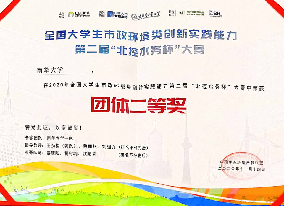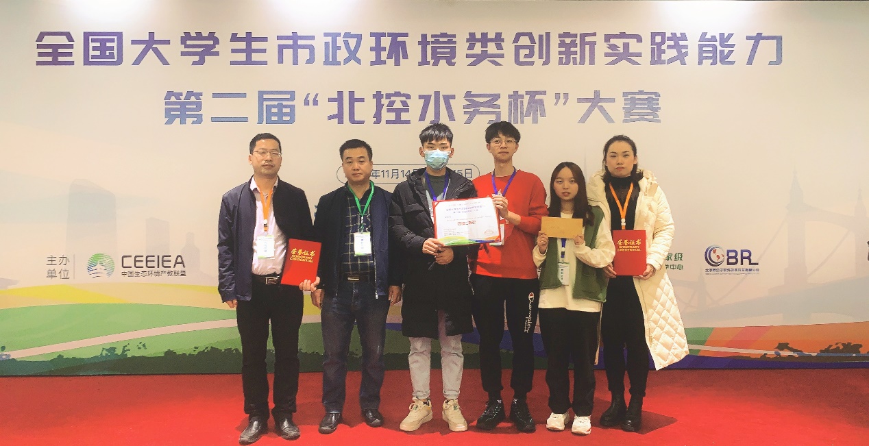 2020年11月14日,由中国生态环境产教联盟主办,北控水务集团、哈尔滨工业大学承办的2020年全国大学生市政环境类创新实践能力第二届“北控水务杯”决赛在哈尔滨工业大学落下帷幕。我校土木工程学院副院长王劲松领队,市政工程系荣丽杉、刘迎九、陈胜兵、陈春宁四位指导教师组织给排水科学与工程专业的学生姜毓阳、黄宛璐、欧阳霁组成的beat365亚洲版官网一队,李韬、李婧、何鹏涛组成的beat365亚洲版官网二队参加了本次比赛。