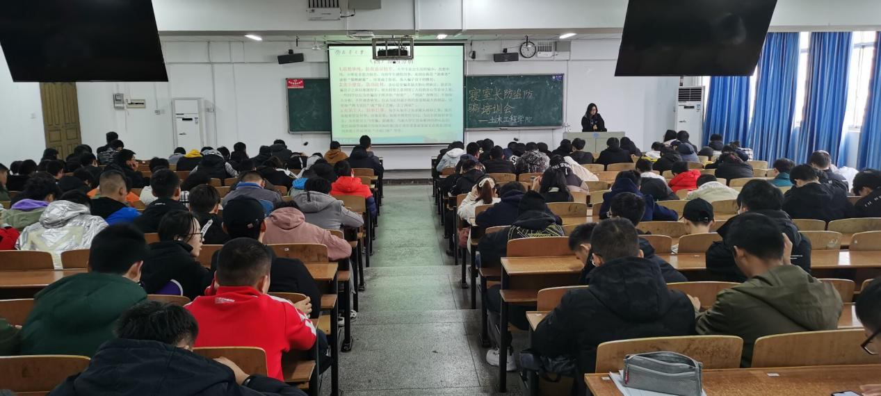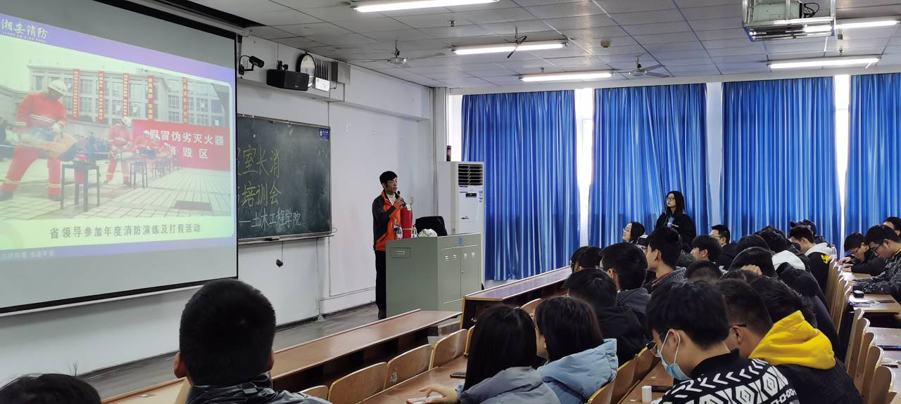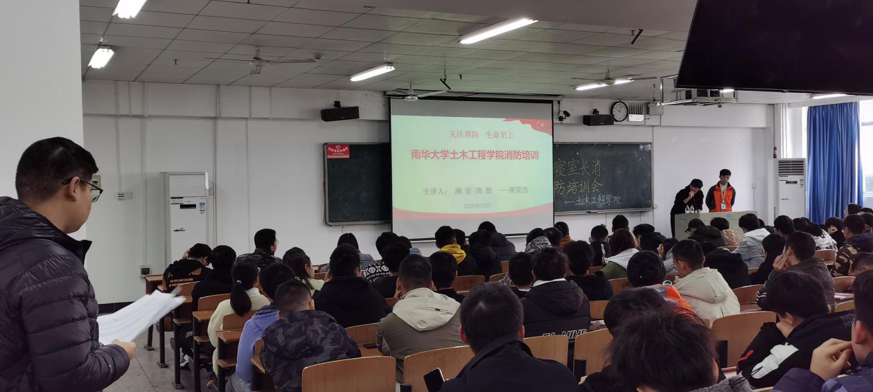 2020年12月5日,beat365亚洲版官网土木工程学院于红湘校区一教412举行寝室长消防及防盗防骗培训会。此次培训会由湘安消防公益服务中心宣教员蒋荣浩、罗扬宣讲消防知识,学生会宿管部部长张洲、副部长杨琪交流大学生防盗防骗知识,与会人员有19、20级全体寝室长以及17、18级各班寝室长代表。会议由学生会宿管部部长张洲主持。