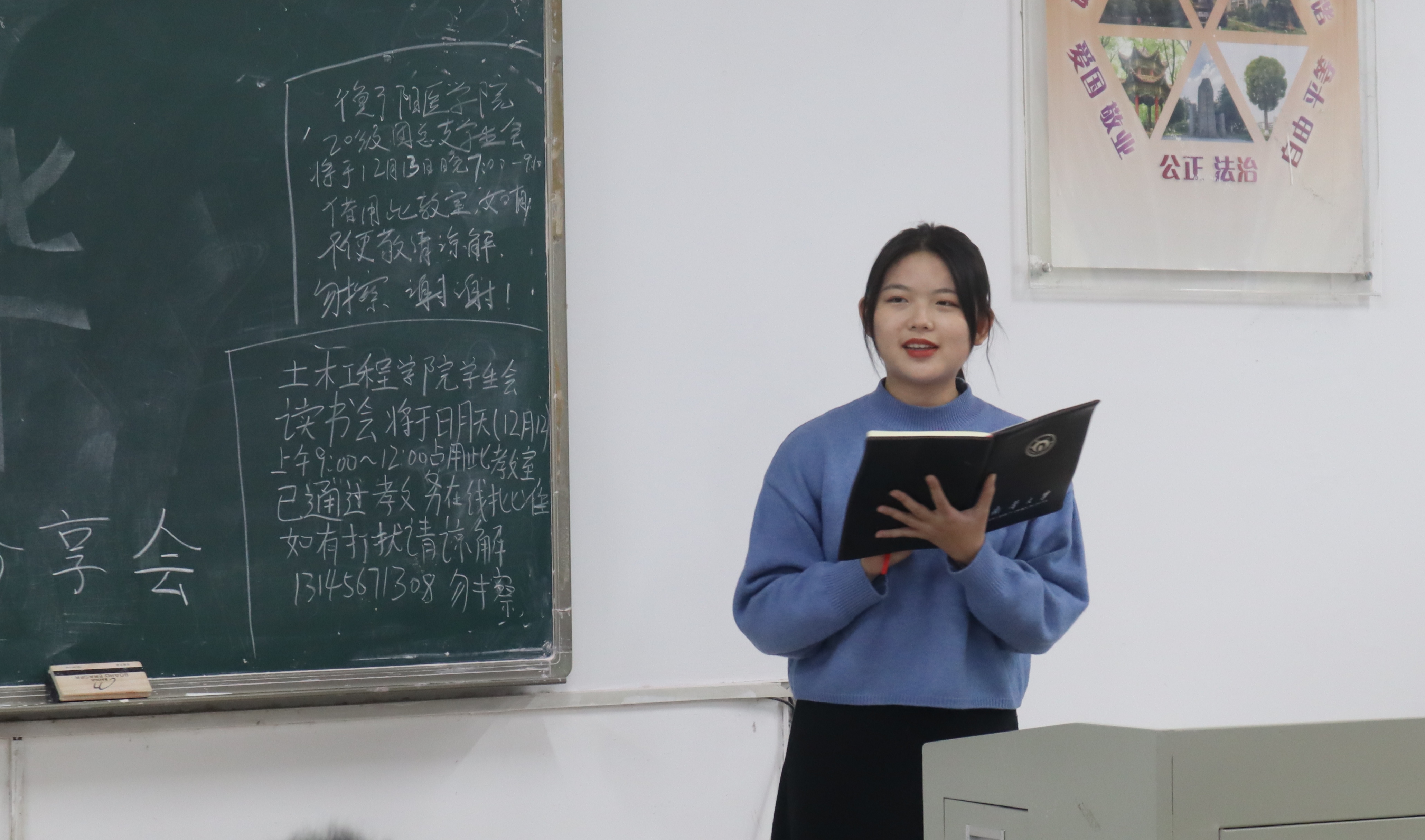 为提高同学们的综合素养、促进大家爱读书,读好书,增进交流与了解,2020年12月13日上午十点,beat365亚洲版官网土木工程学院读书协会于一教112召开 “正青春·耀南华”——民族团结联谊活动暨读书交流分享会活动。本次交流会的与会成员有校学工部王荣老师与祖丽皮亚·麦麦提依明老师、勤工助学基地总经理彭丹、勤工助学中心主任董咏姿、图书馆读书协会李卓冉、校新疆舞协会图迪妮萨、土木工程学院团委组织部两位副部长田子鸣和包清源、土木工程学院读书协会会长王柳青和副会长欧阳小丽,以及船山学院及各学院的同学代表共同参与了本次活动。本次活动由阿依曼和台外库力两位同学主持。