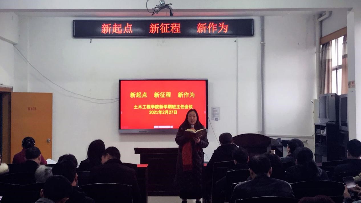 2月27日,在土木楼四楼会议室召开以“新起点、新征程、新作为”为主题的土木工程学院新学期班主任会议,全体班主任参加本次会议。