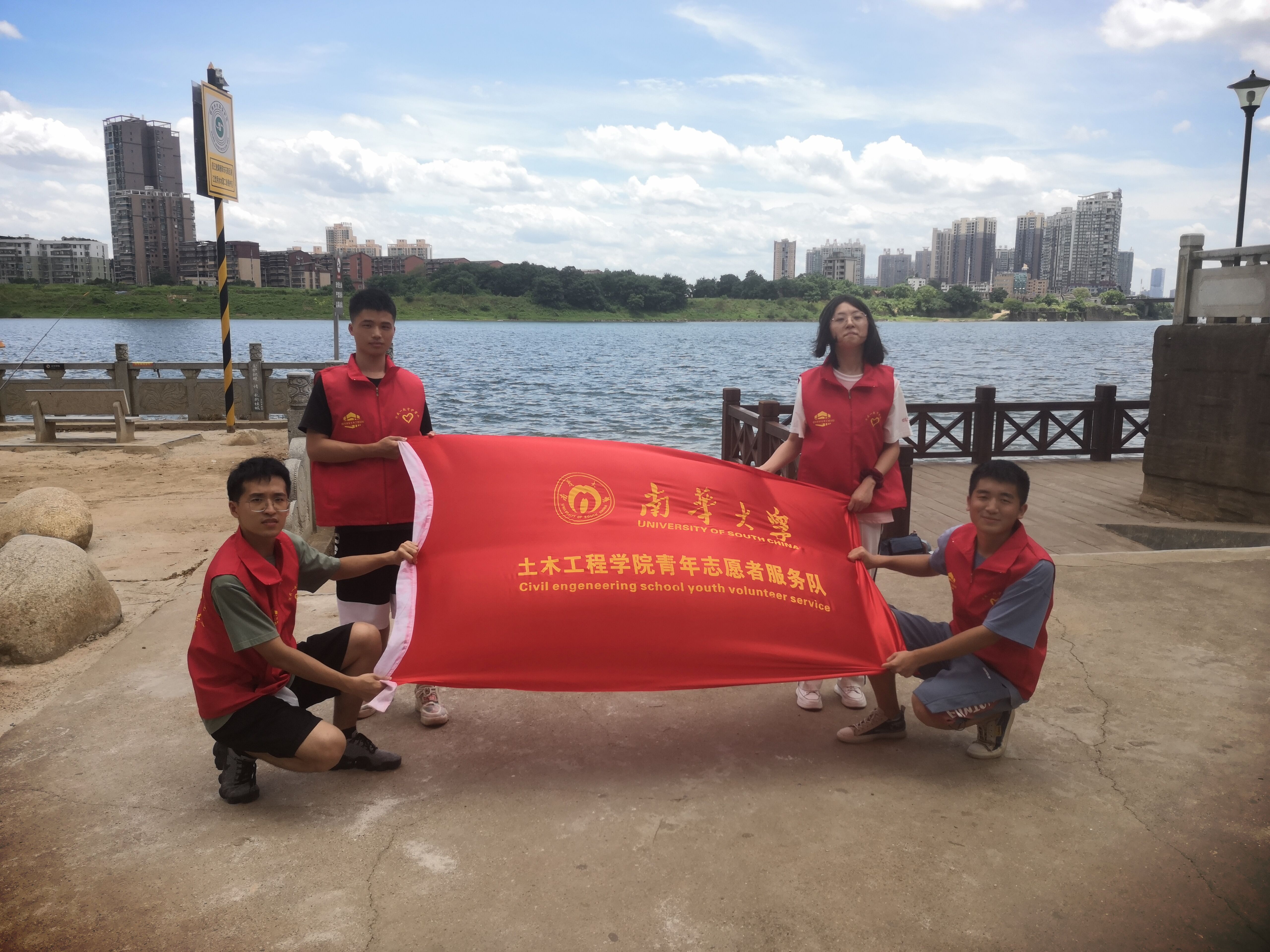 2021年7月9日中午12:30,土木工程学院团委青年志愿者部三下乡团队于湘江沿岸开展保护母亲河志愿实践活动。