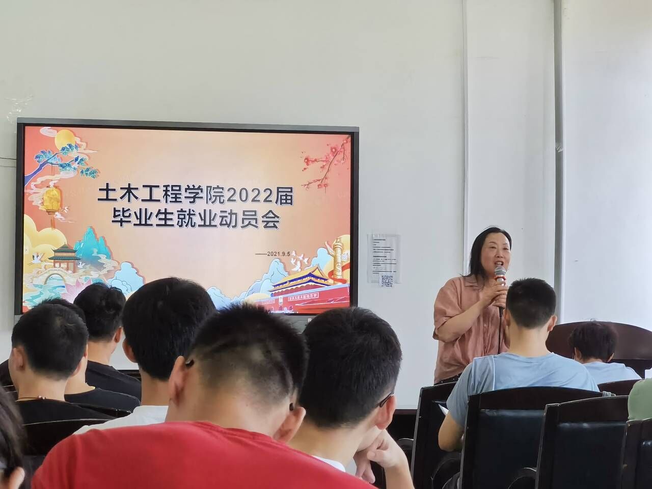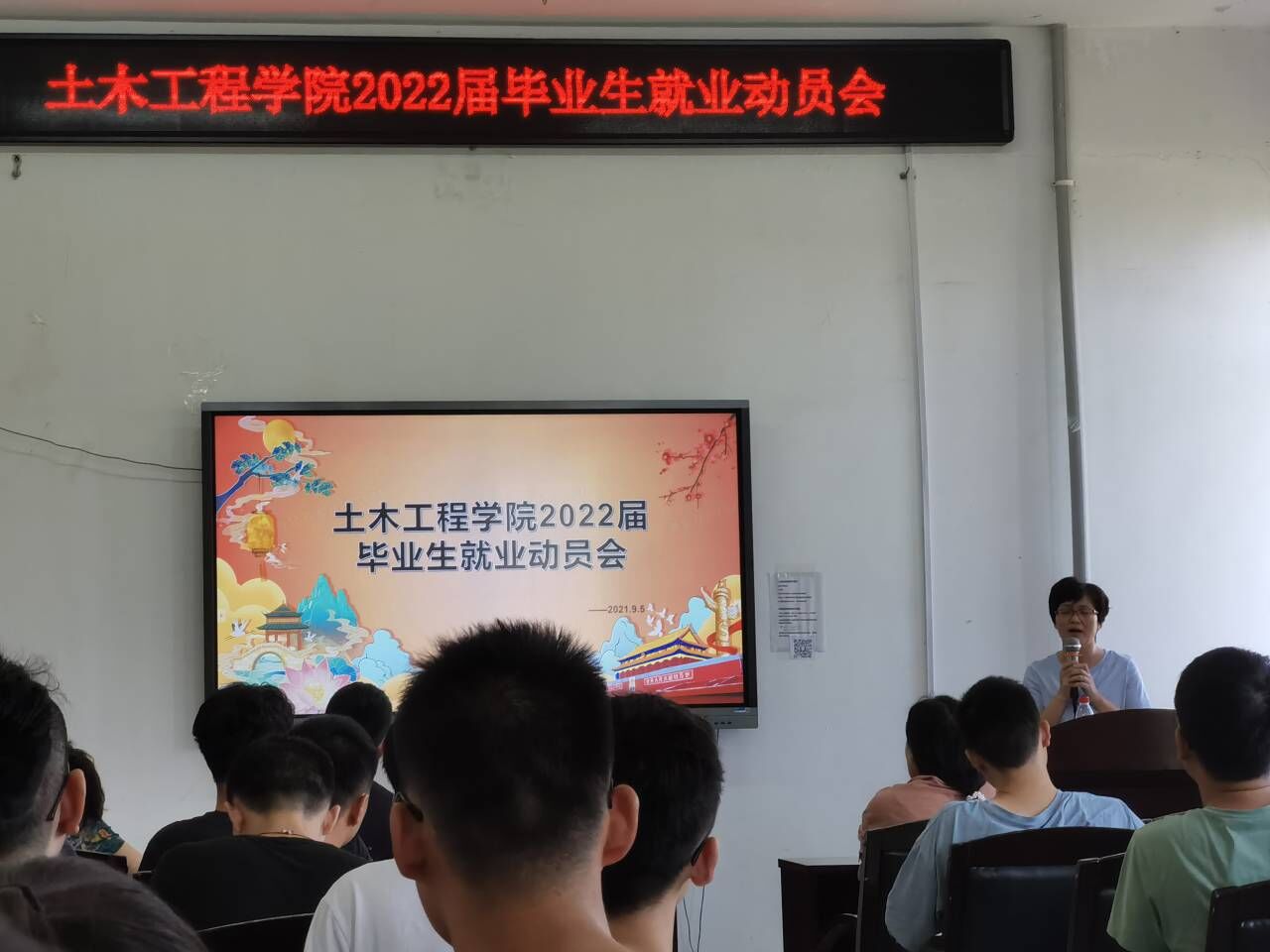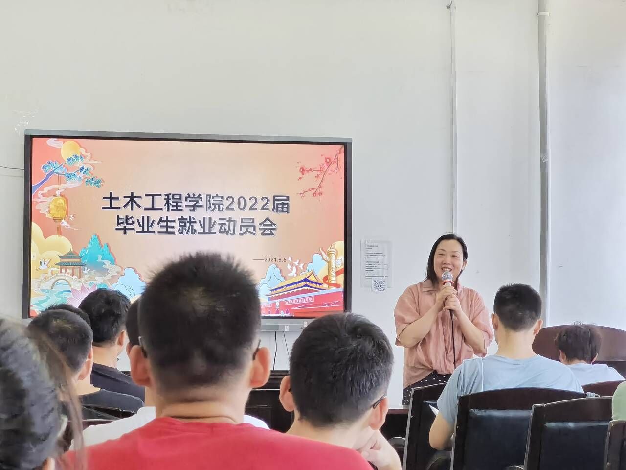 beat365于2021年9月5日上午十点在土木楼四楼会议室举行了土木工程学院2022届毕业生就业动员会。院党委副书记唐素芝、学工室主任李翠新,辅导员彭兴明与2022届各班就业专干共同参加了此次动员会。