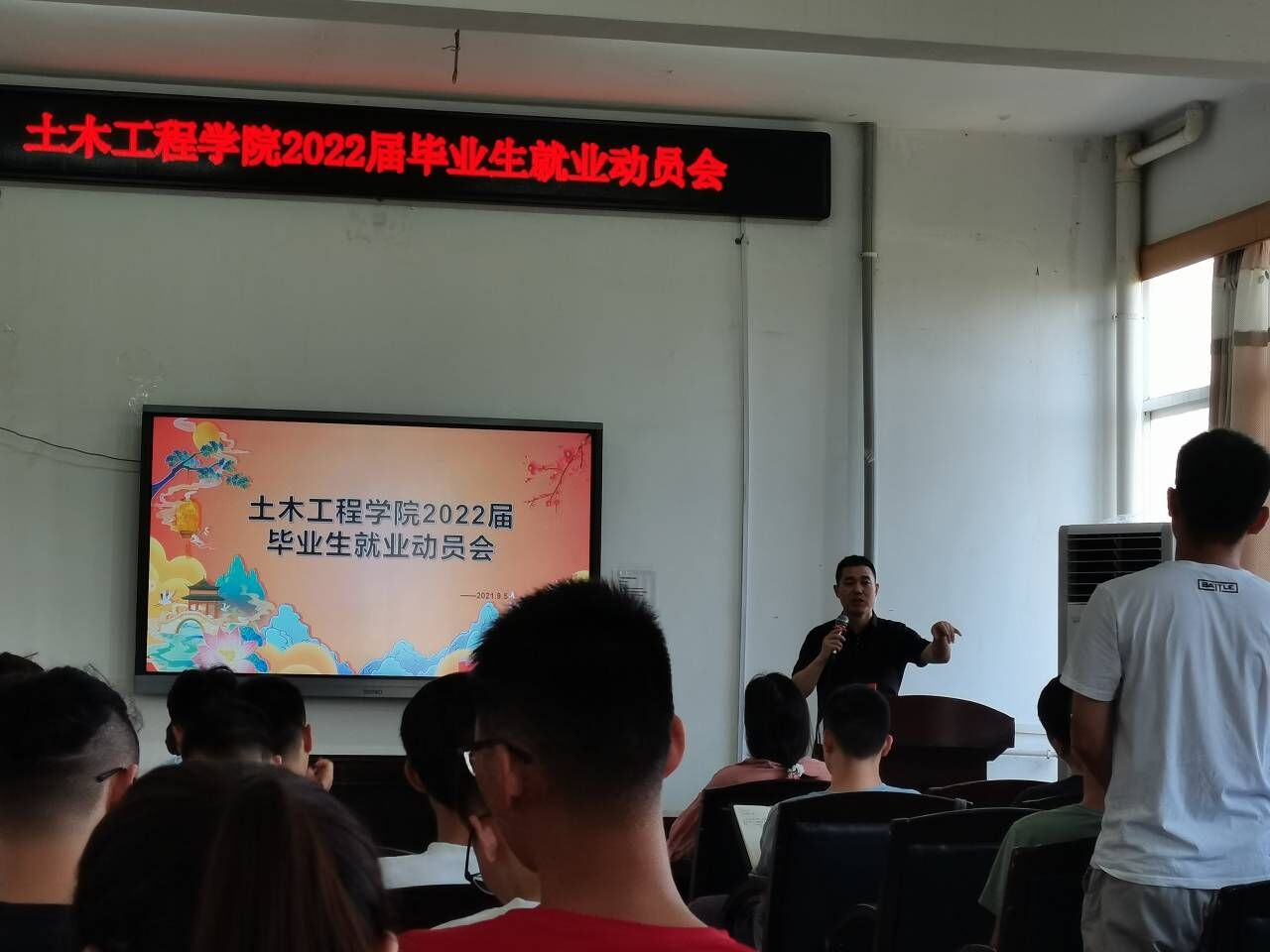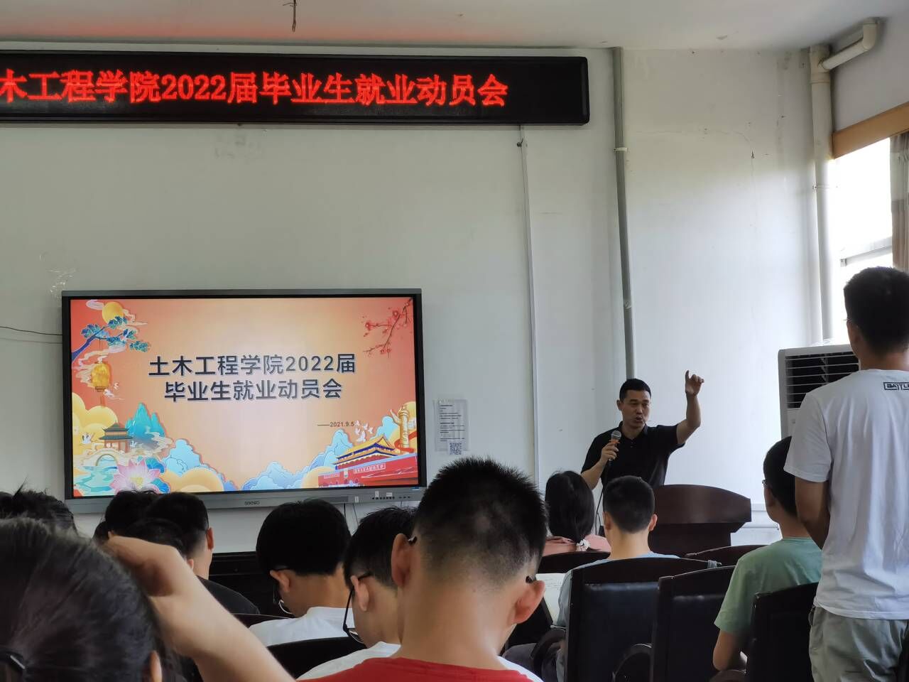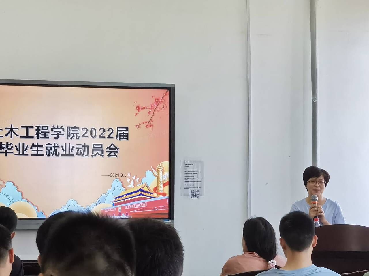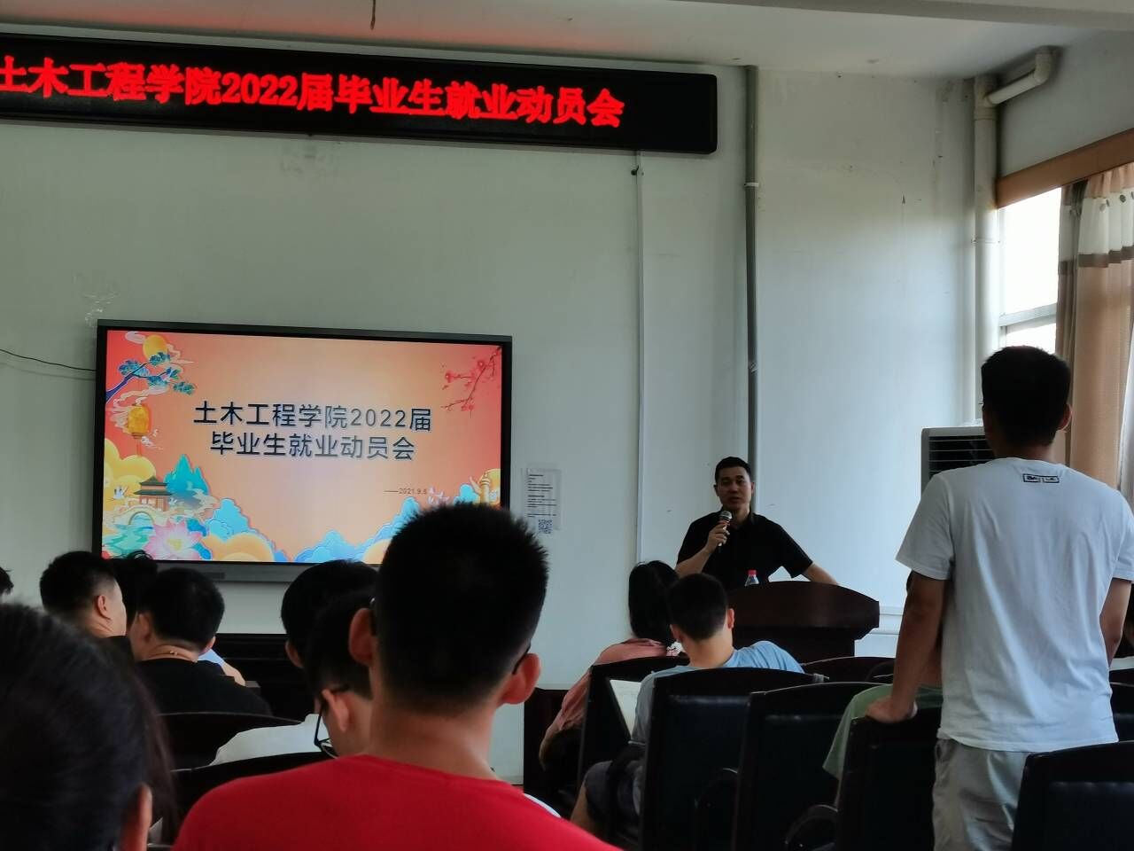 beat365于2021年9月5日上午十点在土木楼四楼会议室举行了土木工程学院2022届毕业生就业动员会。院党委副书记唐素芝、学工室主任李翠新,辅导员彭兴明与2022届各班就业专干共同参加了此次动员会。