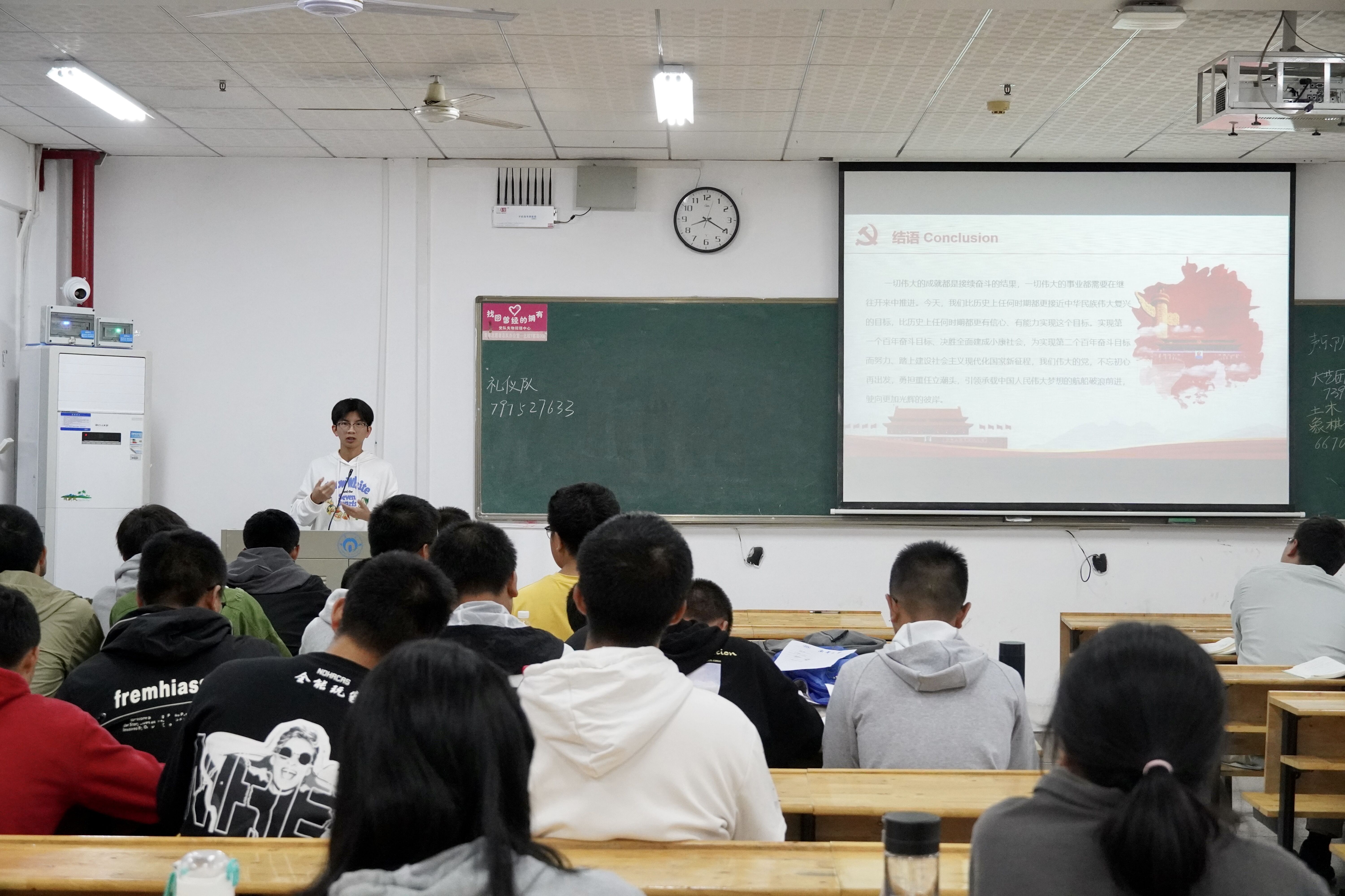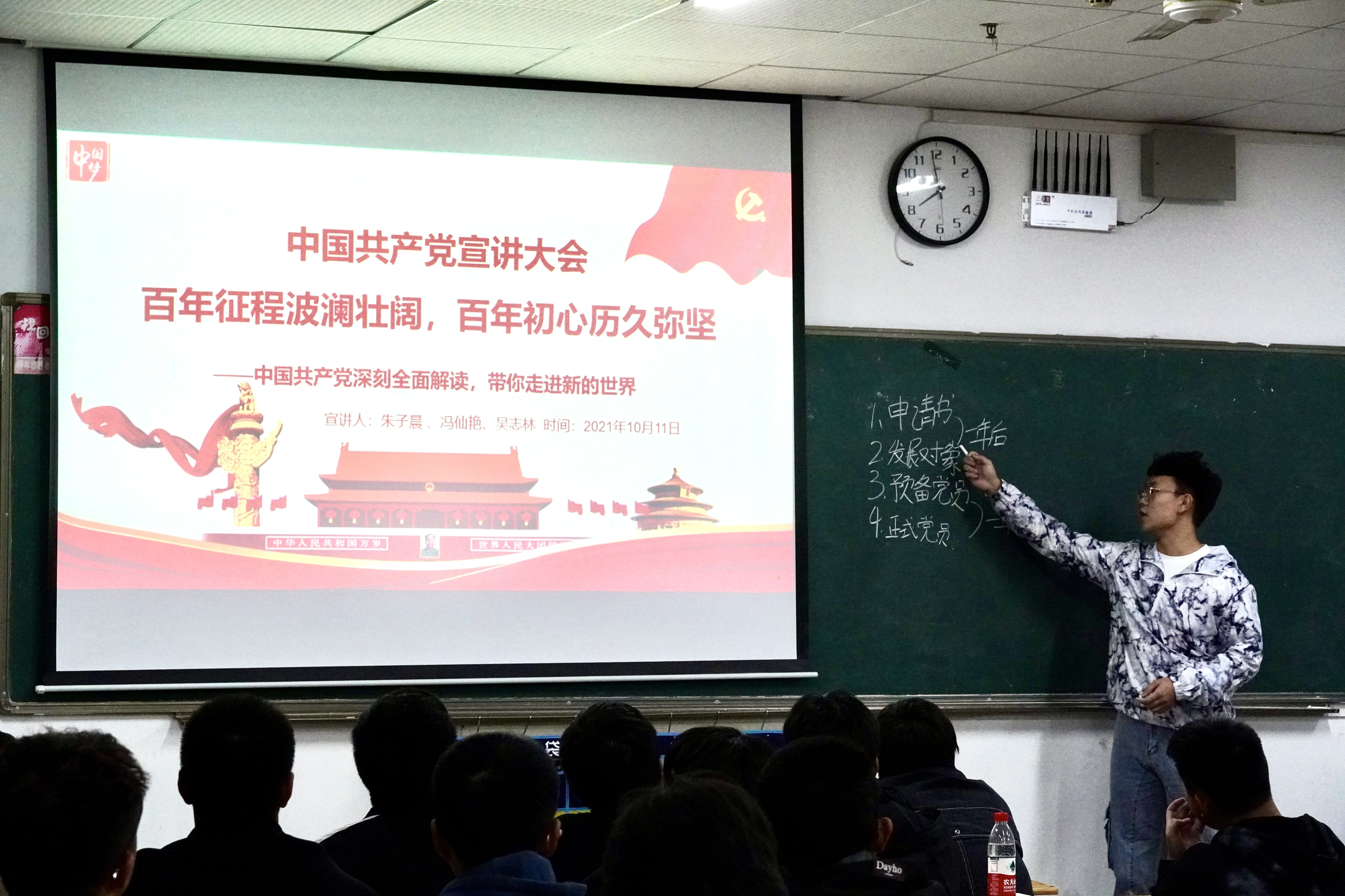 2021年10月11日晚七点半,土木工程学院21级新生入党启蒙教育活动于南华楼部分教室开展。土木工程学院2021级各班新生和各班班助共同参与此次活动。