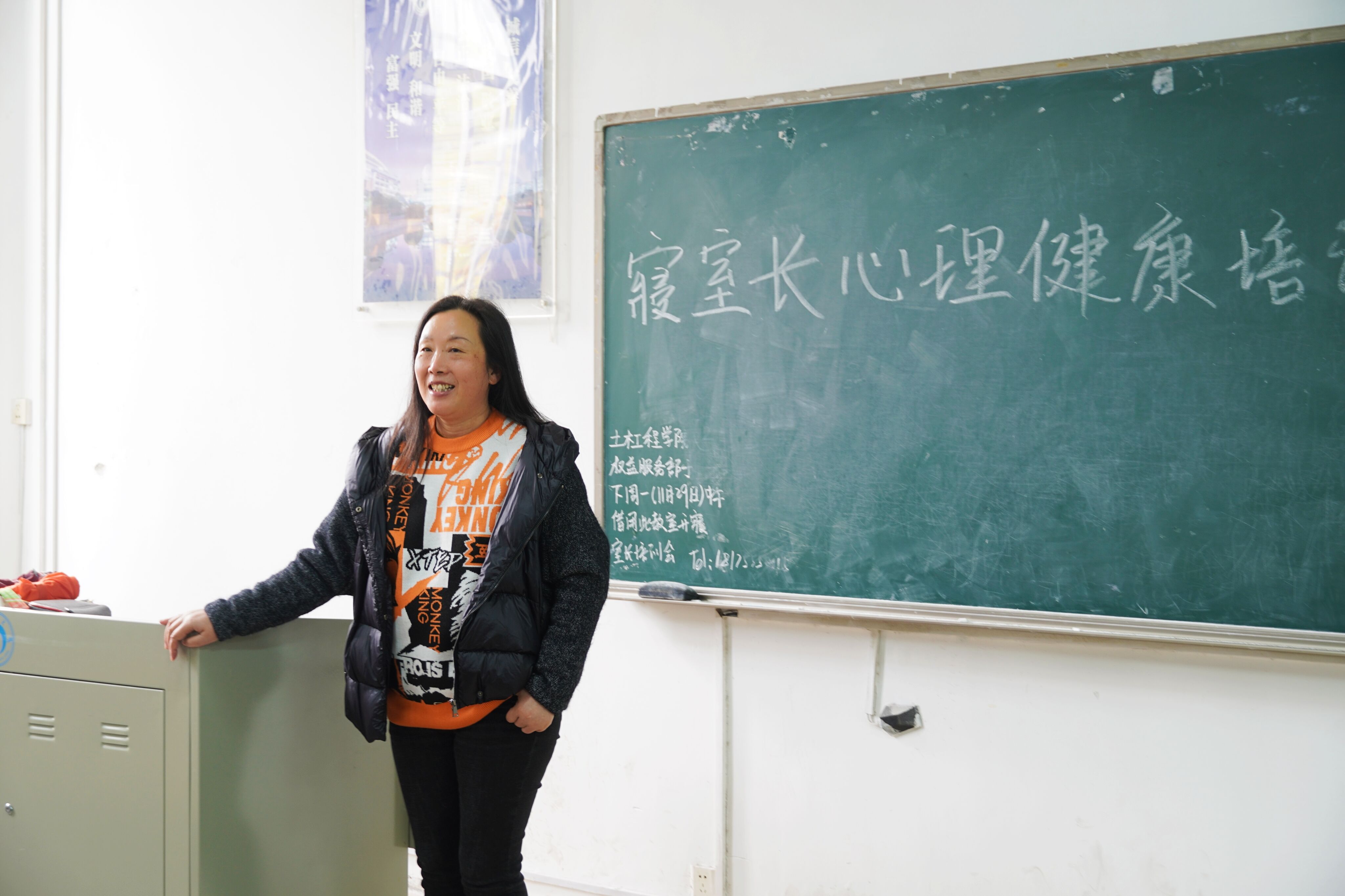 会议伊始,刘华老师从工作要求、具体工作、工作态度等方面明确了各寝室长在生活中的工作职责 ,并为同学们解答了在心理辅导过程中的常见问题。紧接着,刘华老师提出"寝室长是宿舍核心"这一观点并对其进行深入阐述,指出寝室长肩负的重要责任、起到的关键作用。随后,土木工程学院学生会宿管部副部长郭润提醒了在座的寝室长们教室和寝室卫生打扫存在的一系列问题,并呼吁各寝室长带领同学将教室与寝室卫生统一标准,做到最好。最后,唐素芝老师指出寝室长首先要真心付出,真正地为同学们服务;其次是细心观察,关心同伴的心理健康问题;最后要耐心帮助,对同宿舍存在心理压力的同学进行力所能及的帮助。