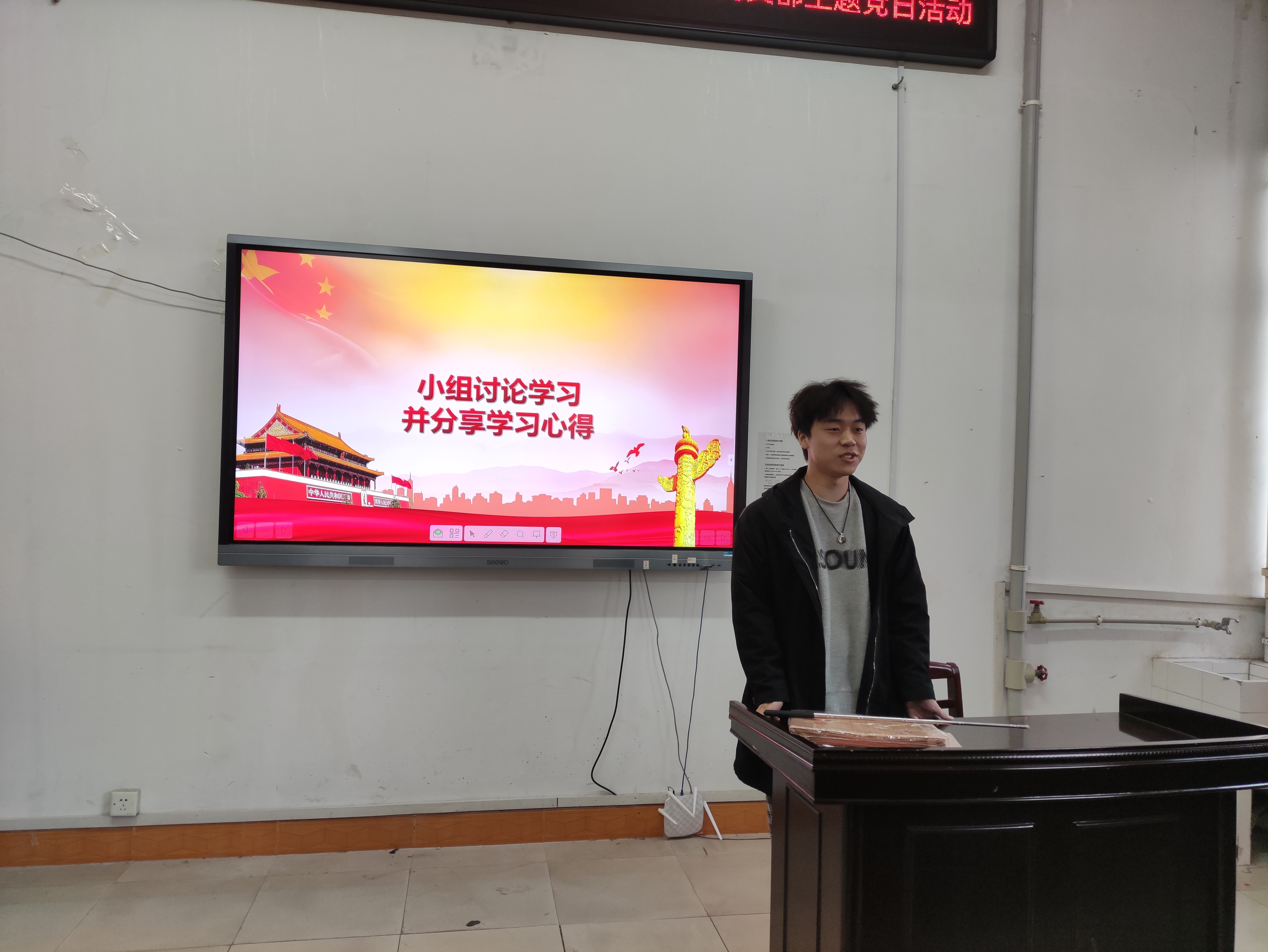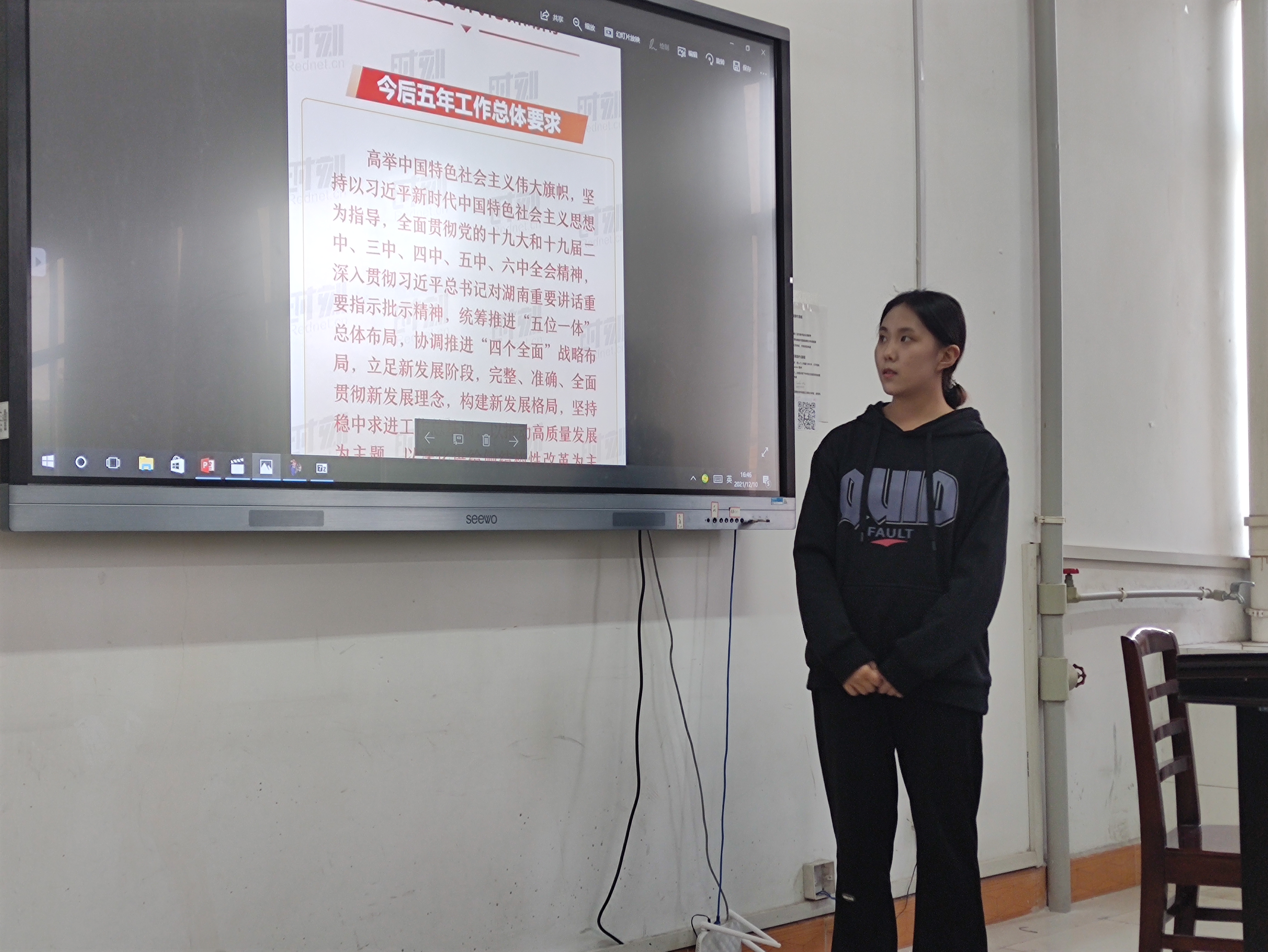 会议第二项,支部书记彭兴明老师以及领学人岳佳微,李邦毅,郁剑峰同志带领大家学习并讲解《湖南省第十二次党代会解读》。