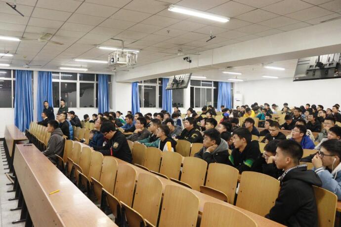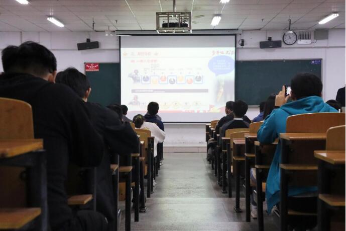 2021年12月11日晚,土木工程学院于南华楼412教室开展征兵宣讲活动。本次活动由退伍大学生姜泽文(曾服役于火箭军某部队)主持,退伍大学生易思雄(曾服役于江西武警某队)主讲,土木工程学院21级各班学生代表参与。