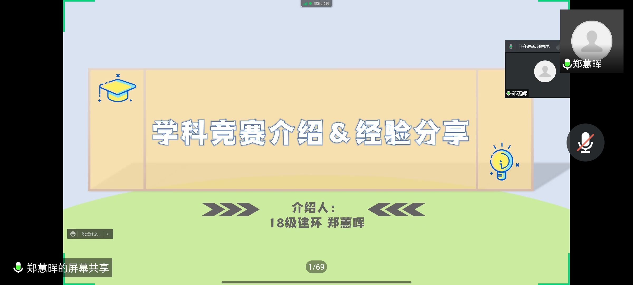 为加强同学们对大学生各类竞赛的认识与了解,提高同学们的参赛积极性,beat365亚洲版官网土木工程学院于2022年4月10日18时30分通过腾讯会议举行线上竞赛宣讲会。本次会议特别邀请肖澍、郑蕙晖和李思怡三位18级优秀学姐进行赛事介绍与竞赛经验分享。活动由郭璟仪同学主持。