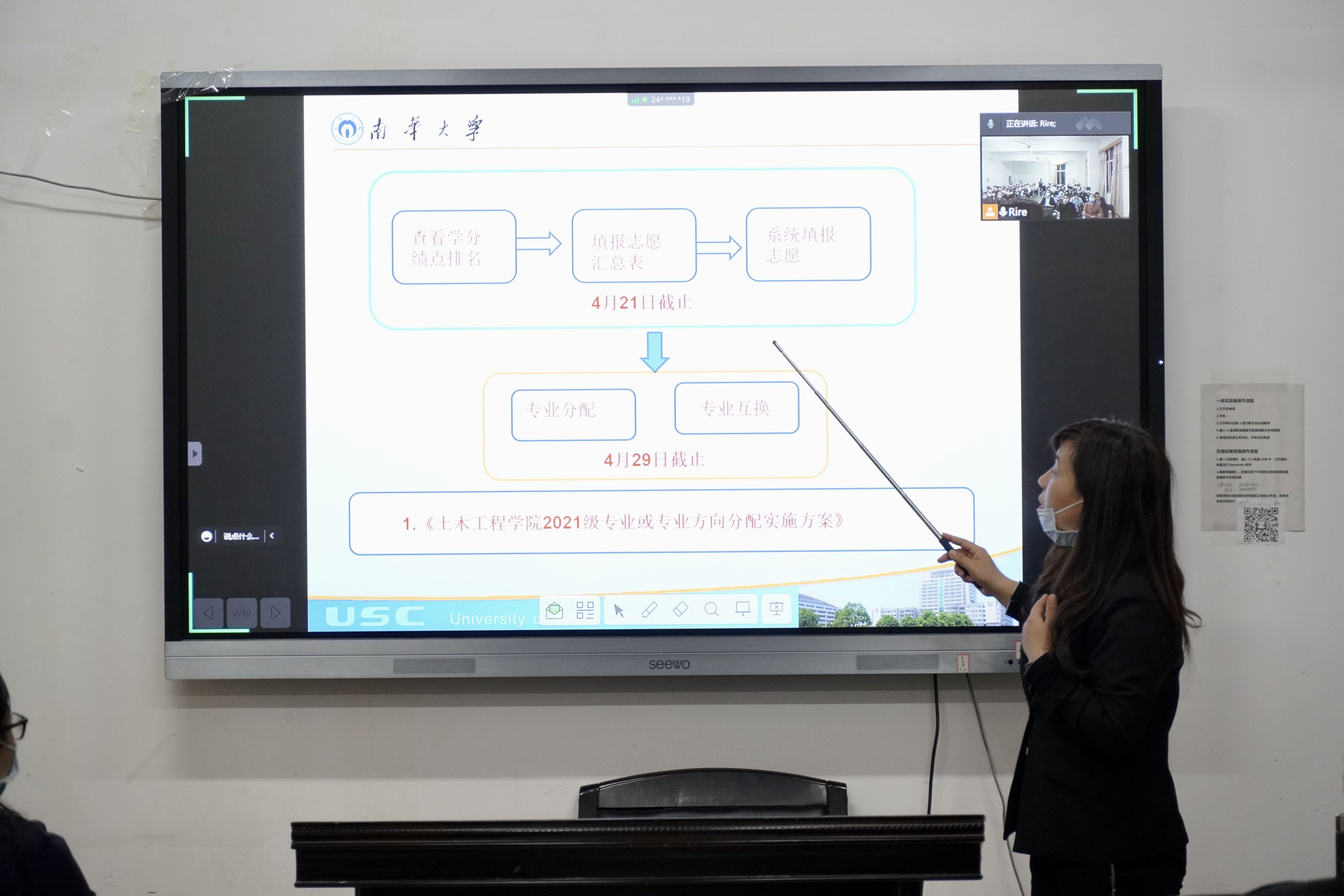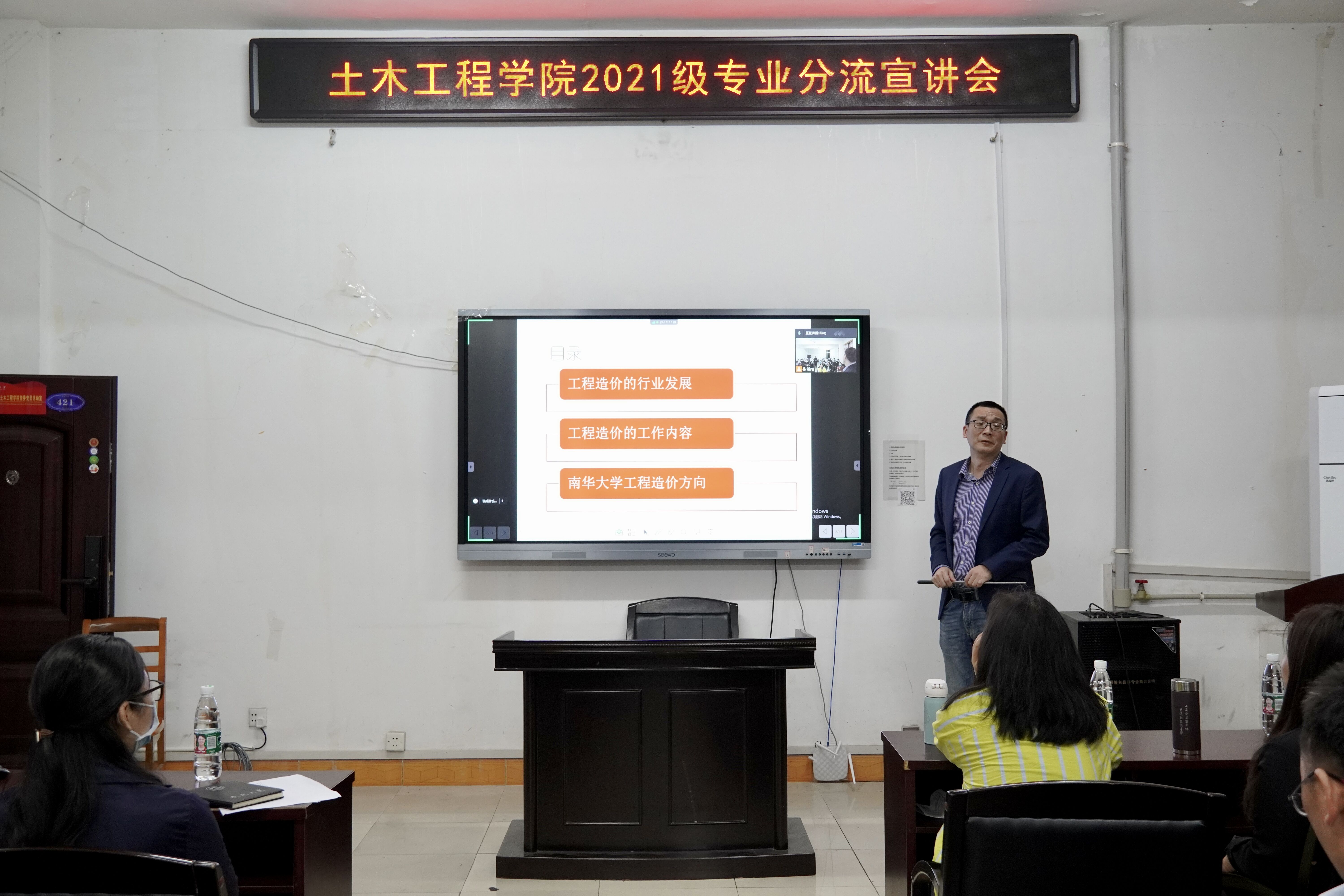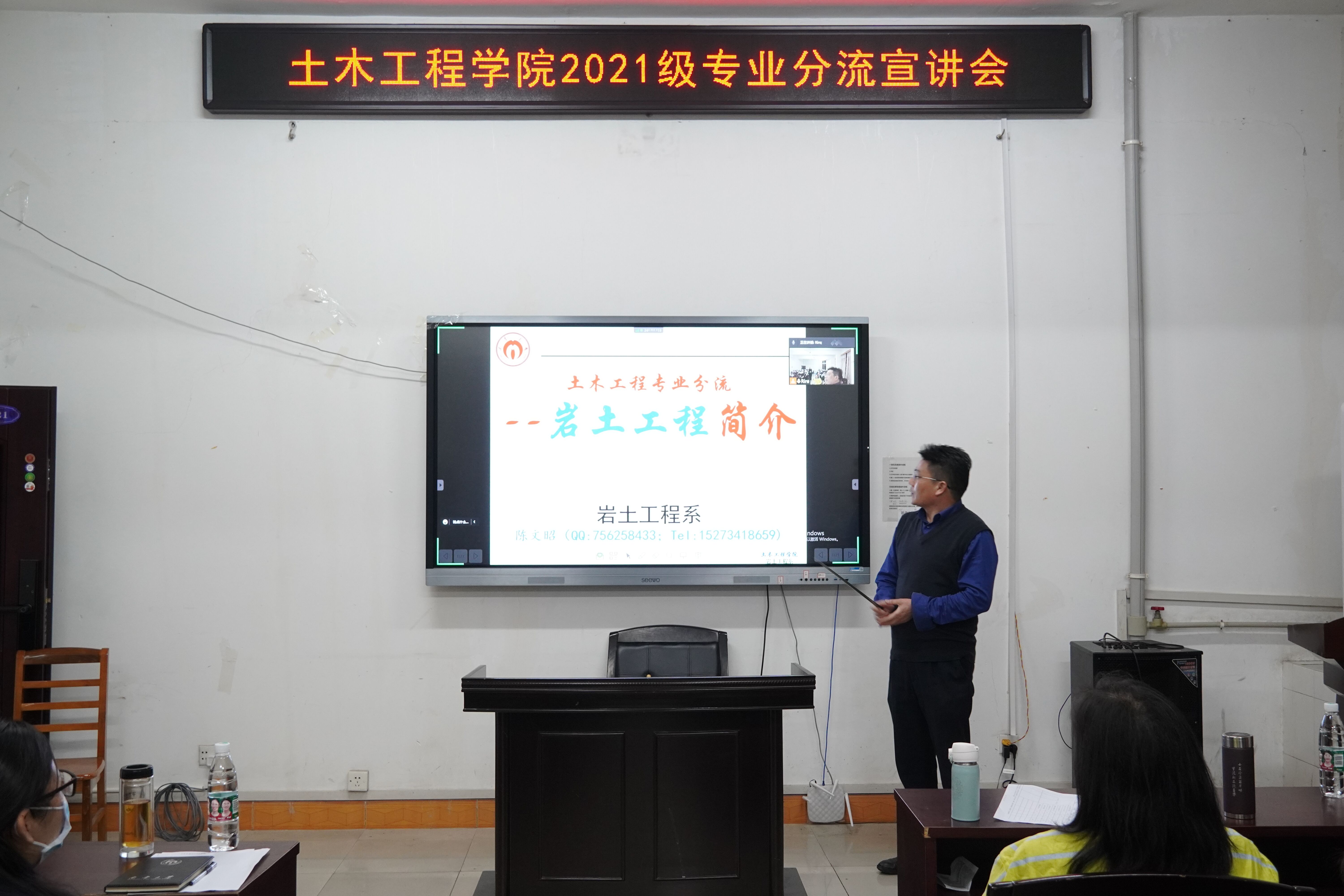 2022年4月I4日晚7点30分,beat365亚洲版官网土木工程学院2021级专业分流宣讲会于土木楼四楼会议室召开。土木工程学院党委书记石建军、党委副书记唐素芝、副院长兼建筑工程系主任孙冰、道路桥梁与渡河工程系主任李明、建筑环境与能源应用工程系主任陈国杰、给排水科学与工程专业系主任谢水波、建筑电气与智能化系主任张振峰、岩土工程系主任陈文昭、造价工程系主任聂春龙及团委书记吴旦出席此次会议。本次专业分流会以线上线下相结合的方式进行,取得了良好的效果。