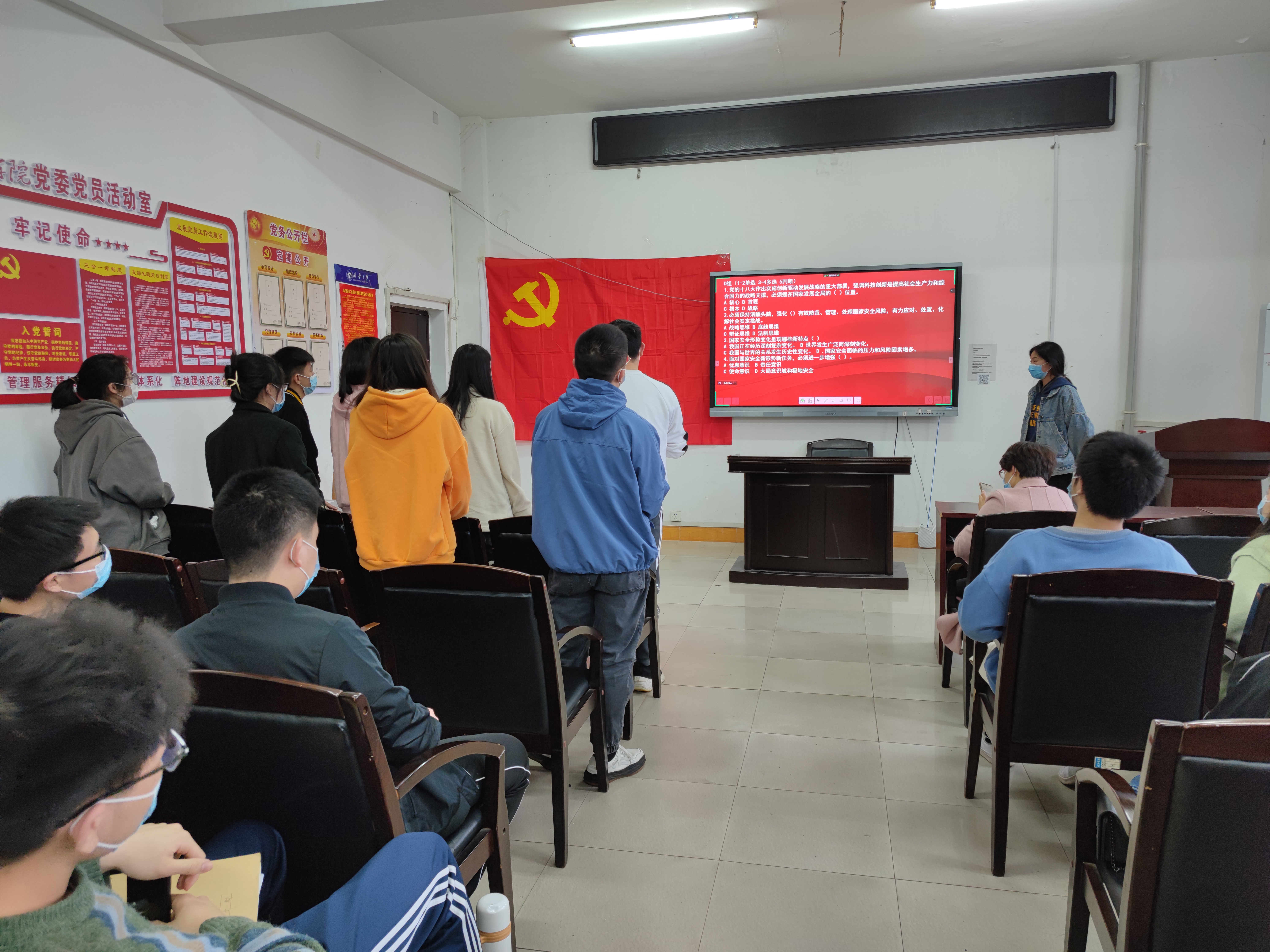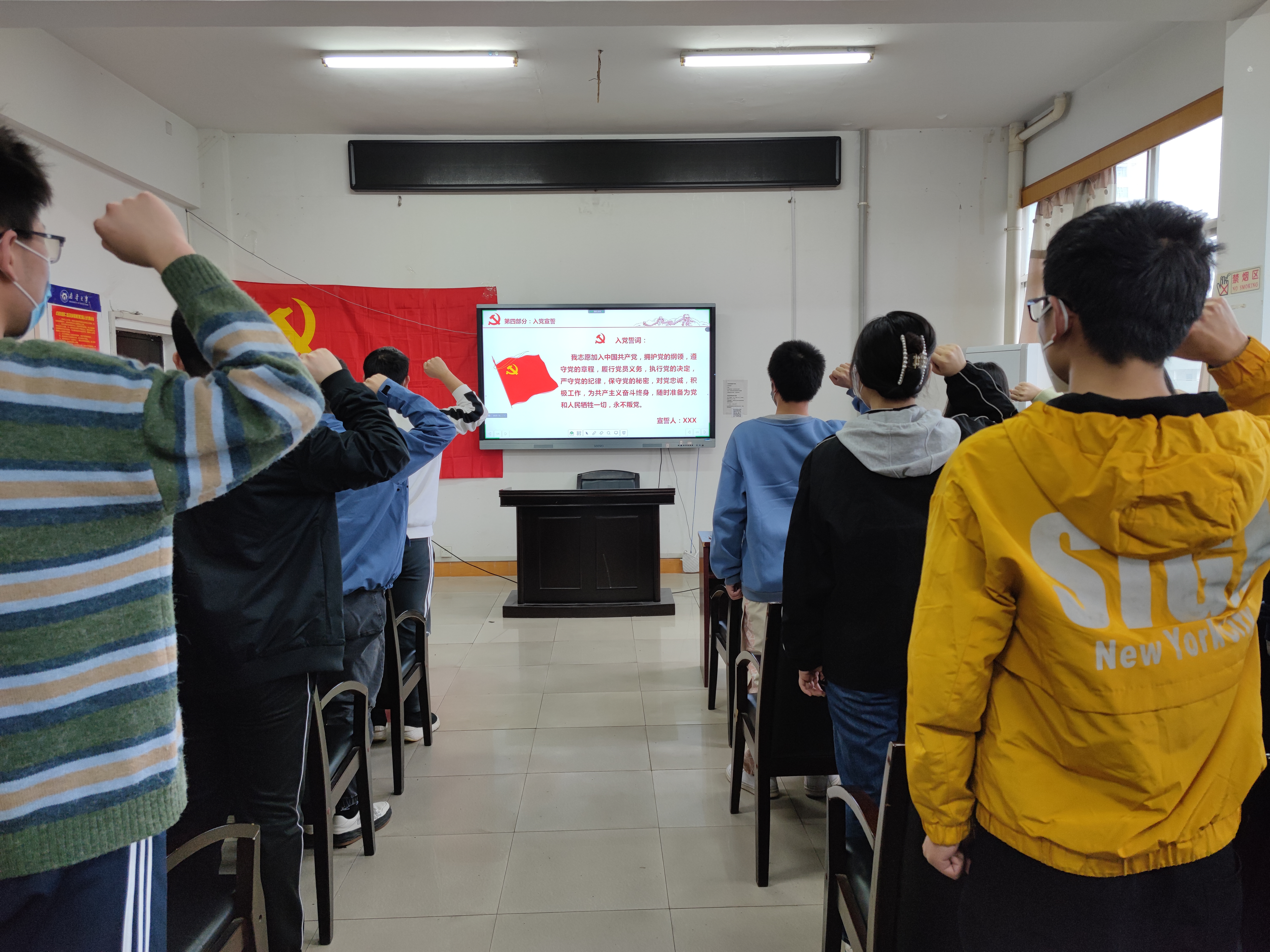 接着,举行新党员宣誓仪式。在支部书记李老师的领誓下,全体党员面向党旗,举起右手庄严宣誓。