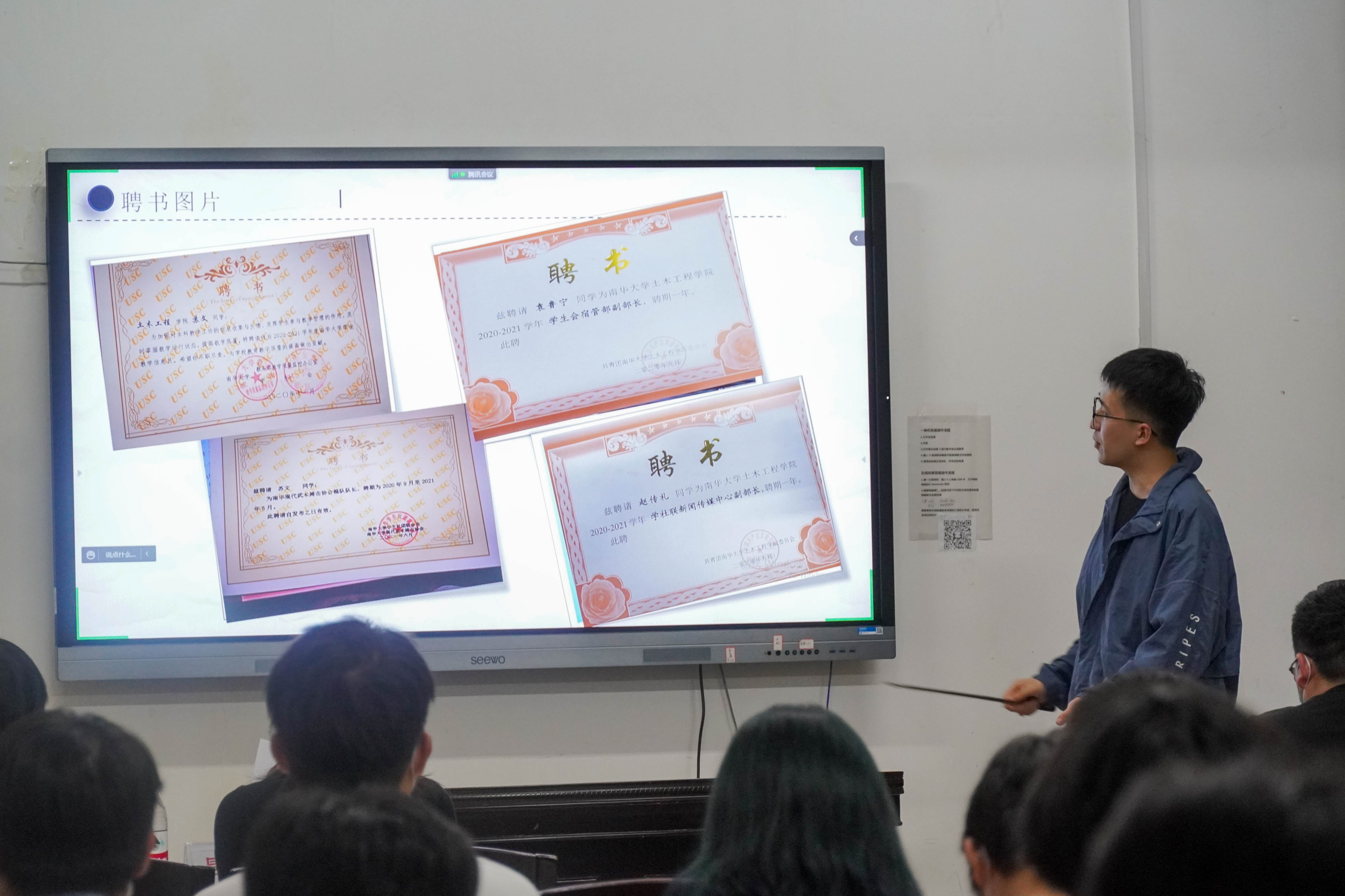 在主持人宣读了答辩要求及评分细则后,各团支部代表按顺序进行答辩。答辩过程中,各团支部代表以PPT的形式向评委老师展示了班级学习情况、思想政治、社会实践、特色活动等方面的综合表现。答辩的内容丰富,材料详实;各团支部代表在台前侃侃而谈,整场答辩会氛围热烈,掌声不断,充分展现了土木工程学院优秀学子的精神风貌。团支部答辩结束后,评委老师们就答辩内容提出问题并给予改进建议。