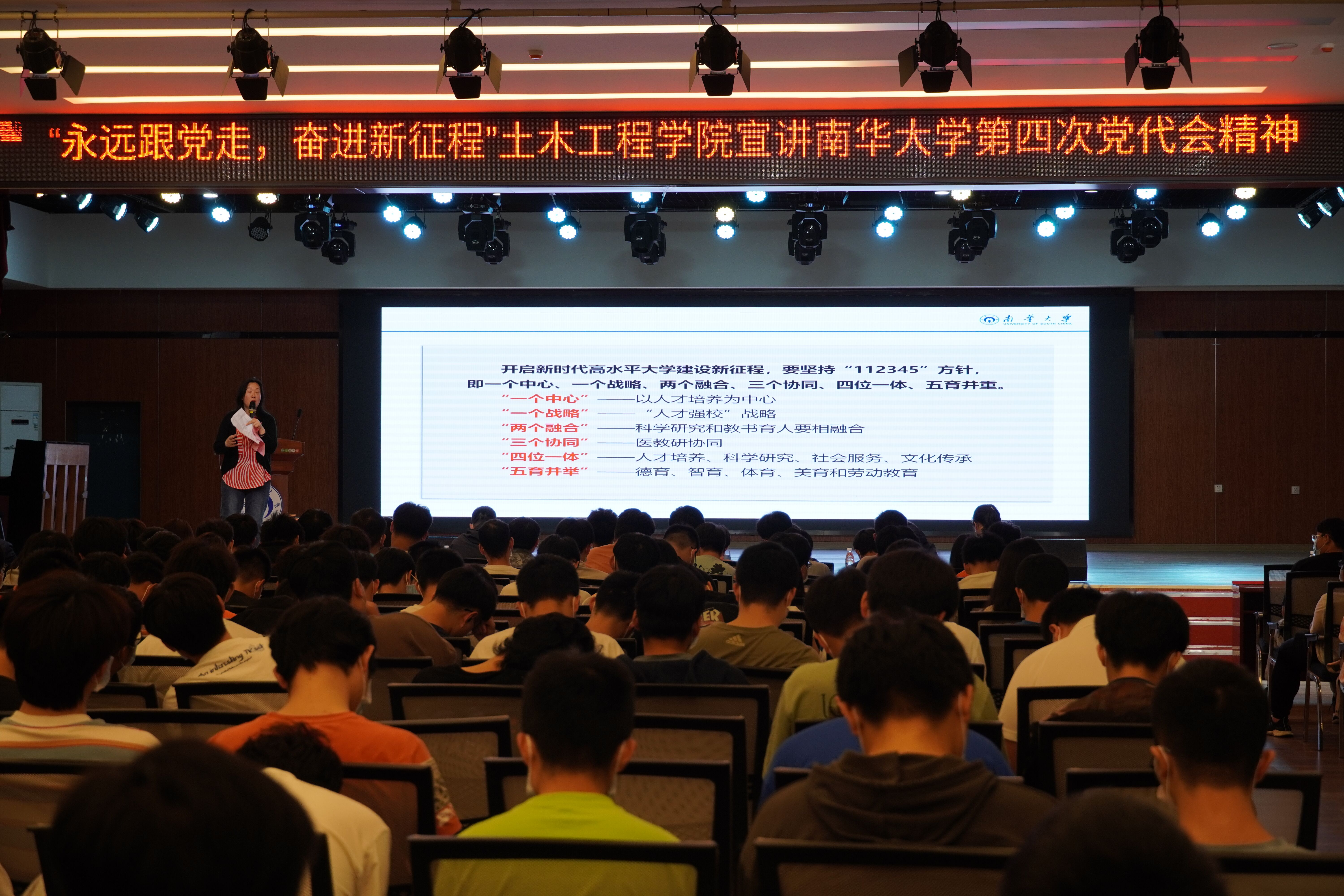 会议伊始,唐素芝老师总结介绍了本次党代会工作的“三好”:一、会议报告写得好,报告总结过去,展望未来,字斟句酌,内容全面;二、高山书记讲得好,会场的八次掌声充分体现了书记动人心魄的讲话内容;三、会议效果好,会议内容详实,与会人员全神贯注,收获丰富。接着,唐老师带同学们回顾了衡阳市委书记秦国文在会上的重要讲话,引用秦书记的口号“南华有所想,衡阳有所谋;南华有所呼,衡阳有所应;南华有所盼,衡阳有所为”,号召大家一起努力,一起进步,为南华的美好未来共同奋斗。随后,唐老师重点宣讲了党代会中的“12345方针”和学校改革发展面临的形势、奋斗目标及主要任务等工作要求,深入浅出地传达了beat365亚洲版官网第四次党代会精神,鼓舞同学们深刻领会和准确把握第四次党代会精神实质。最后,唐素芝老师总结大会重点内容,回顾学校过去六年的工作成就,强调学校实现未来五年跻身国家双一流高校行列的总目标,提出大家共同努力奋斗的要求,呼吁同学们不负时代,不负韶华,向着共同的目标不断奋进。至此,本次beat365亚洲版官网第四次党代会精神宣讲会圆满结束。