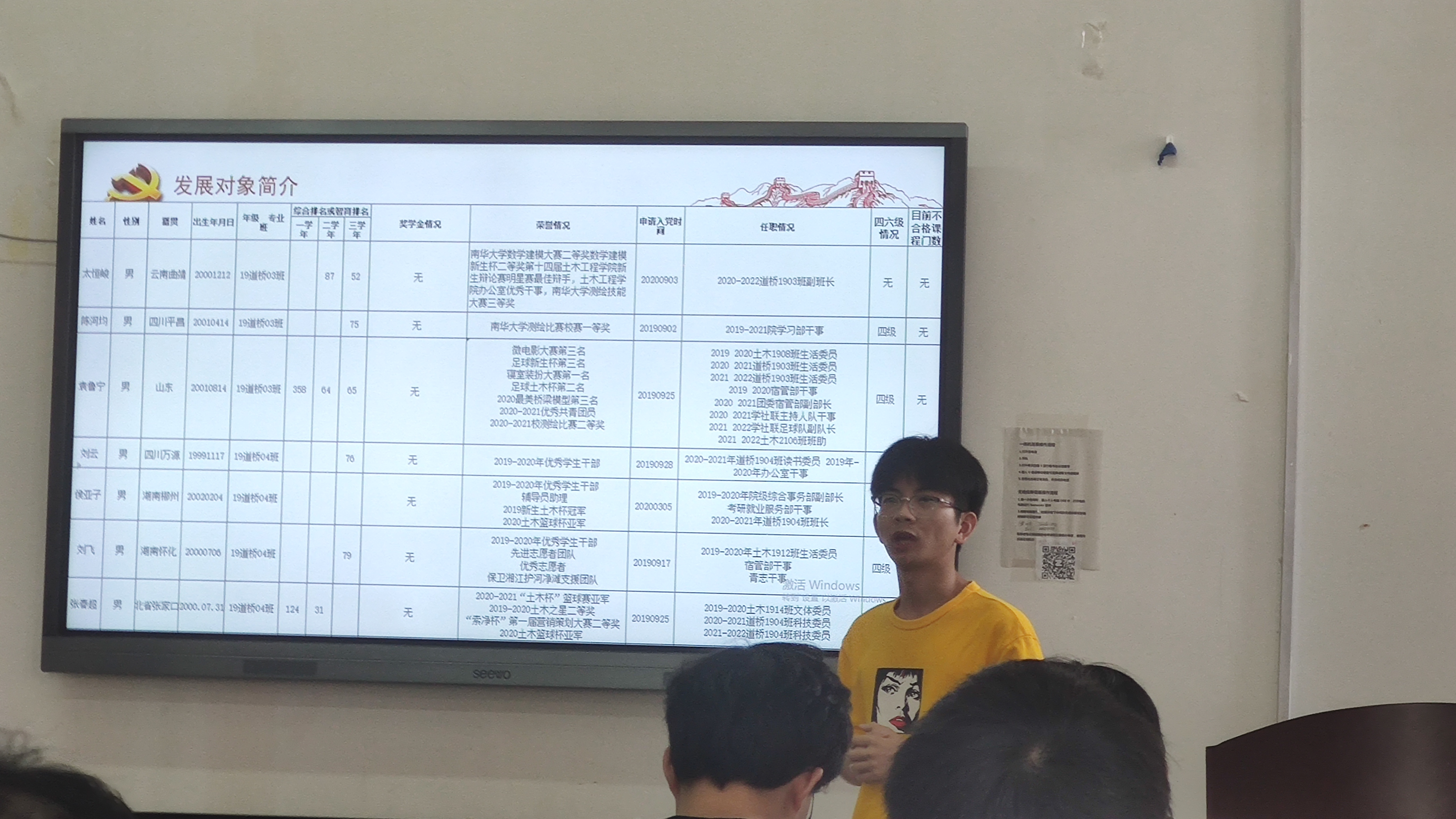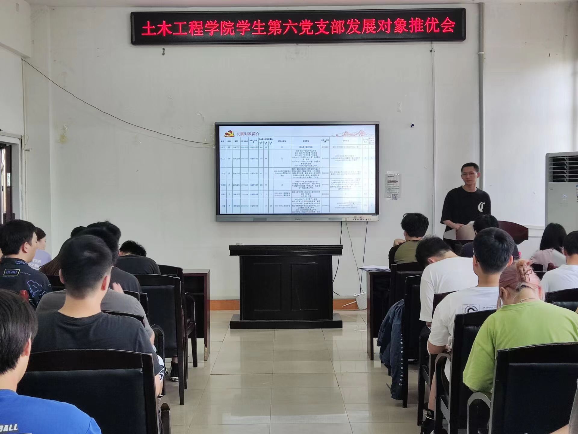 2022年5月29日14:00土木工程学院学生第六党支部于土木楼四楼召开发展对象推优会议。支部书记刘华老师、支部全体学生党员、发展对象及各班群众代表参加会议,本次推优评议会由赵树立同志主持。