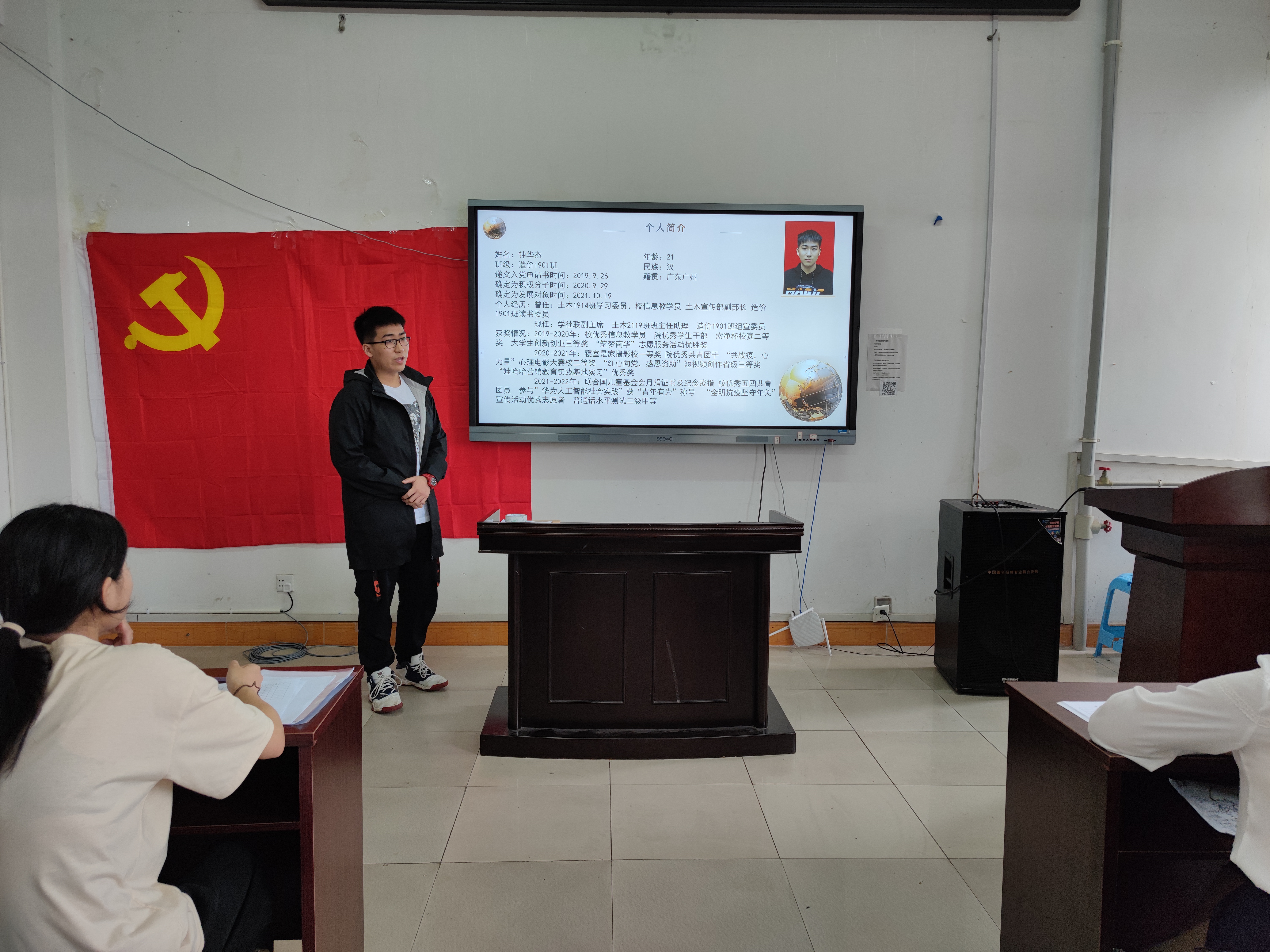 为做好2022年上半年党员发展对象工作,促进党员发展流程更加规范有序,切实保证党员发展质量,2022年5月30日15:00,土木工程学院学生第二党支部于土木楼四楼会议室举行2022年上半年拟发展对象推优答辩会,会议由谌琪欣同志主持,支部全体党员、发展对象以及班级群众代表参加了会议。