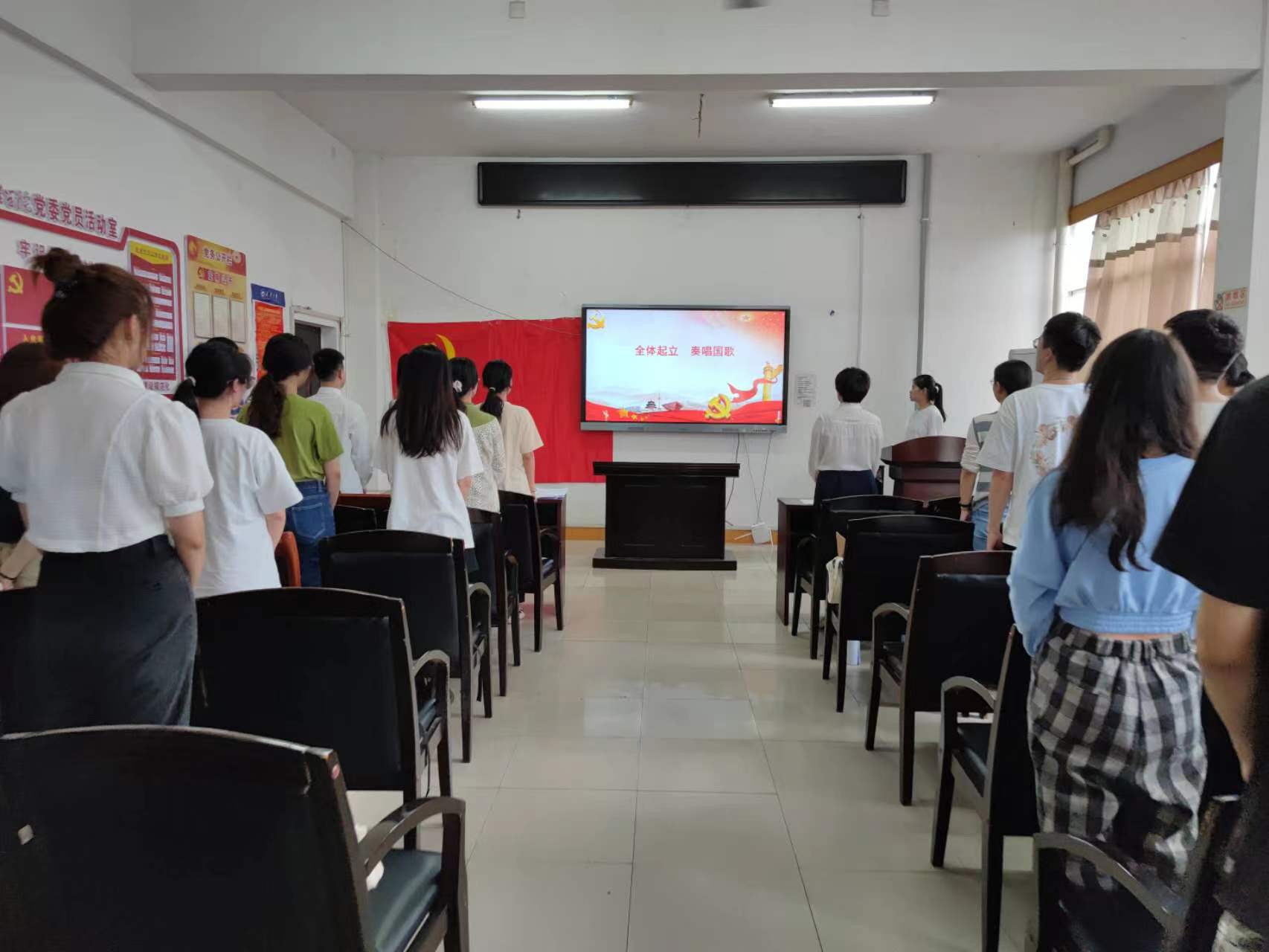 首先,全体起立,奏唱国歌,接着,曾令楠等14名预备党员逐一汇报自己在预备期间思想、学习、工作、生活等方面的情况,入党介绍人介绍了预备党员的现实表现情况,并表明转正意见,与会党员也充分讨论,表明态度。谢倩兰同志代表支委会向支部大会报告了对曾令楠等14名同志在预备期间的教育和考察情况及审查情况。随后,经无记名投票表决,支部书记李老师宣读大会决议,一致同意曾令楠等14名同志按期转正,并报党委审批。转正党员纷纷表态,今后将继续以合格党员的标准严格要求自己,改正缺点、弥补不足,提高自身素质,发挥党员先锋模范作用。