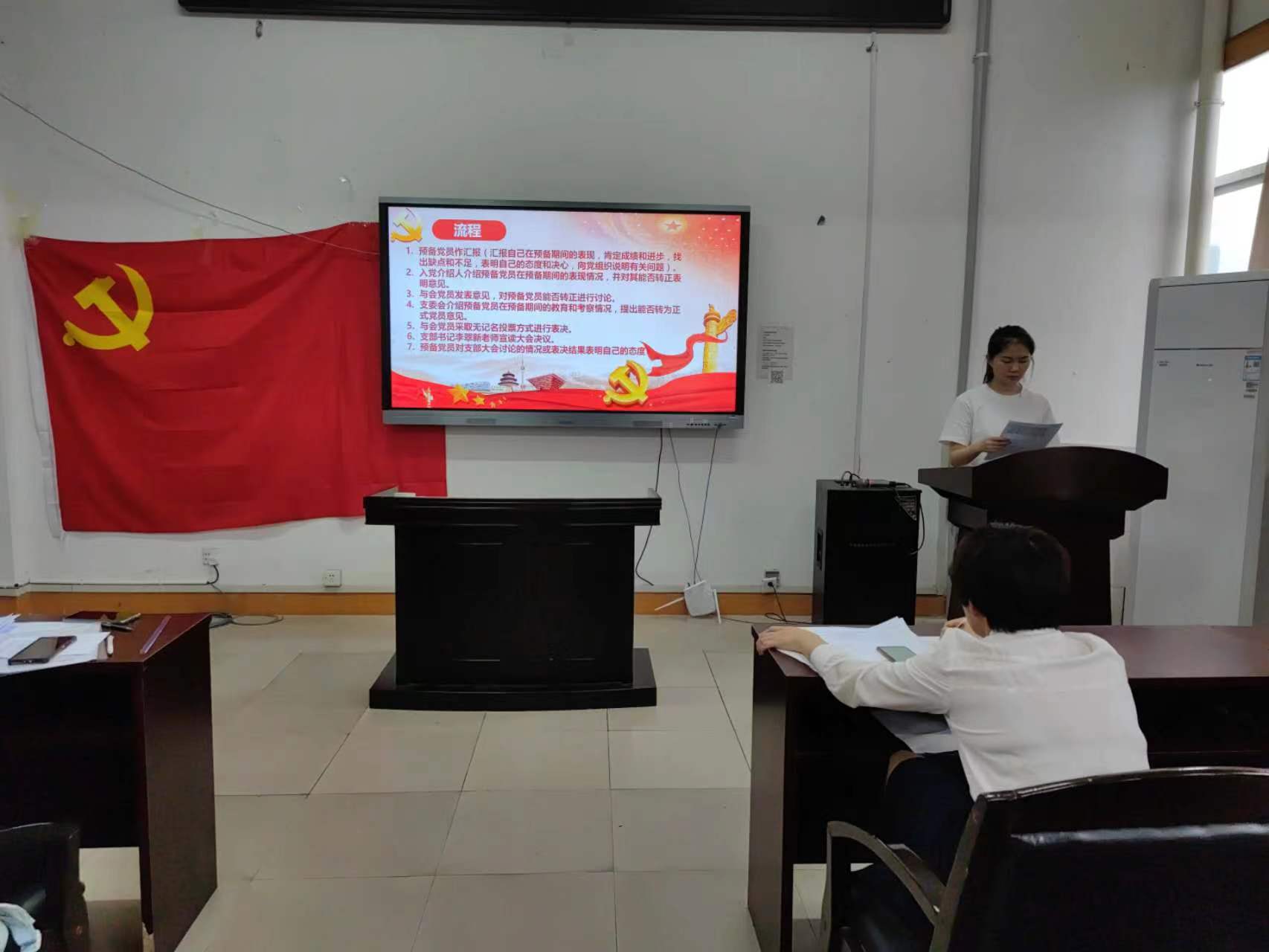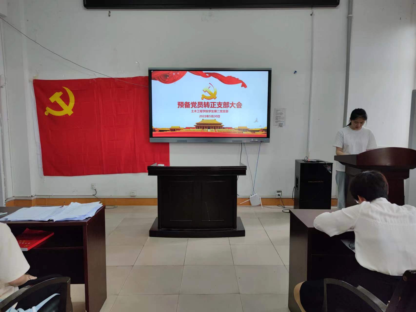 2022年5月30日16:30,土木工程学院学生第二党支部在土木楼四楼会议室召开预备党员转正支部大会,会议由支部副书记谢倩兰主持,支部全体党员参加会议。