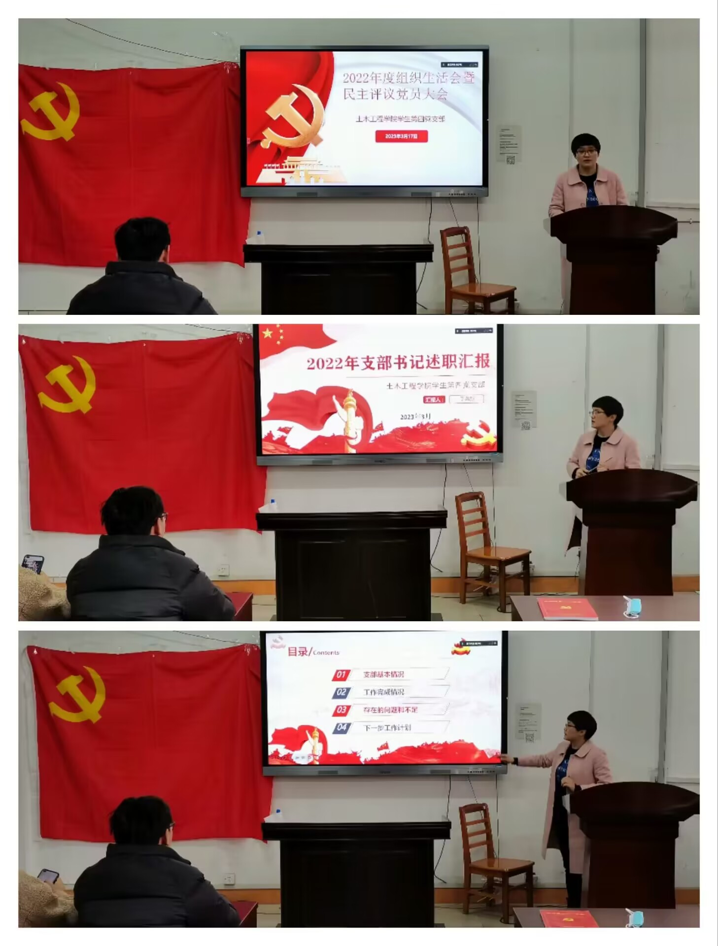 2023年3月17日上午,土木工程学院学生第四党支部在土木楼四楼会议室召开2022年度组织生活会和民主评议党员大会。院党委委员邹品玉老师到会指导。会议由学生党支部书记李翠新老师主持,全体党员参加。