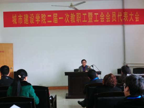 接下来是杨金辉主席作关于城市建设学院分工会工作报告,对近五年来的工作进行回顾,就开展的各项建设活动和健全的相关制度建设做了全面的总结,并提出2015年分工会的需完成主要工作事项和工作重点以及工作目标。唐素芝副书记作城市建设学院2014年度人、财、物等重大事项工作的报告,阐述了人事变动情况、预算执行情况、及设备购置情况。杜震球同志作beat365亚洲版官网城市建设学院第二届教职工代表大会提案征集工作报告,详细报告了上届提案落实情况和本届提案的征集情况。