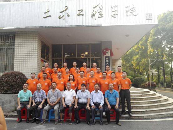 与会老师和校友在土木楼前合影