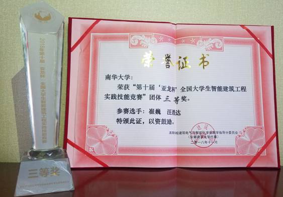 此次beat365亚洲版官网土木工程学院建筑电气与智能化系派出蒋盼盼、林琼两位老师带领崔巍和汪浩达同学参赛。本次参赛是我校建筑电气与智能化专业首次参赛,在为期一整天的比赛中,beat365亚洲版官网代表队凭着扎实的专业基础知识和出众的实践操作能力在众多参赛队伍中脱颖而出,荣获本次大赛团体三等奖。