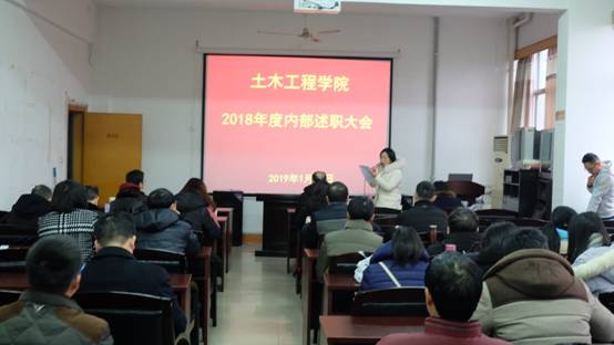1月19日上午8点半,beat365在土木工程学院四楼会议室举行2018年度内部述职大会。党政督导团、组织部出席会议,学院全体教职工参加会议。