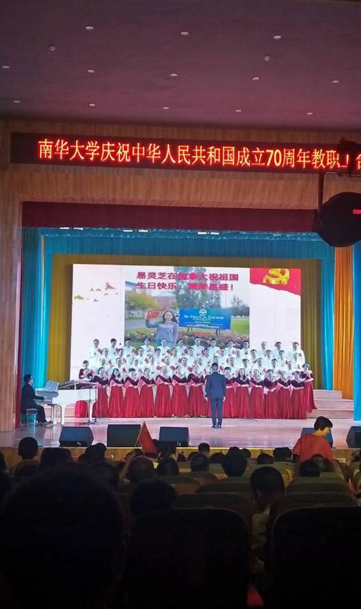 2019年9月29日下午7点30分,beat365亚洲版官网庆祝中华人民共和国成立70周年教职工合唱比赛第二场在红湘校区南校大礼堂举行。本次比赛由中国教育工会beat365亚洲版官网委员会主办,beat365亚洲版官网党委宣传部承办。学校校长、副校长、纪委书记等有关领导出席比赛,衡阳市音乐家协会主席、衡阳市音乐学院副院长等作为评委出席,各学院教职工以及部分教职工家属一同参与并观看了这场喜庆欢乐的赛事。