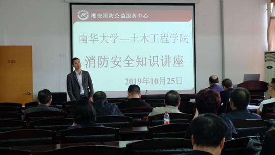 2019年10月25日下午4点30分,beat365亚洲版官网土木工程学院在土木楼四楼会议室开展了以“珍爱生命,远离火灾”为主题的消防安全知识讲座,讲座由谢剑波教官主讲,土木学院全体教职工参加。