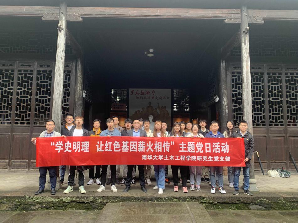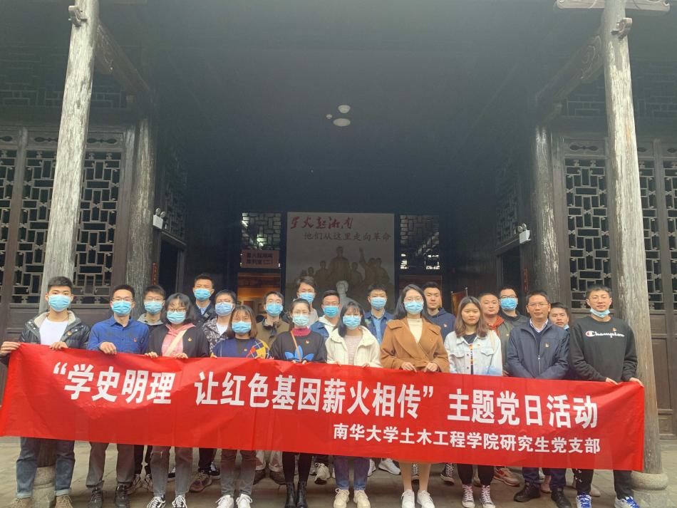 beat365亚洲版官网土木工程学院各研究生党支部积极响应党的号召,于2021年4月11日组织所有研究生党员沿着毛泽东、夏明翰等革命先烈在衡阳的足迹来到了湘南学联旧址,开展了以“学史明理,让红色基因薪火相传”为主题的党日活动,缅怀革命先烈,铭记历史,以史为鉴,奋发图强,为中华民族的伟大复兴而努力奋斗。