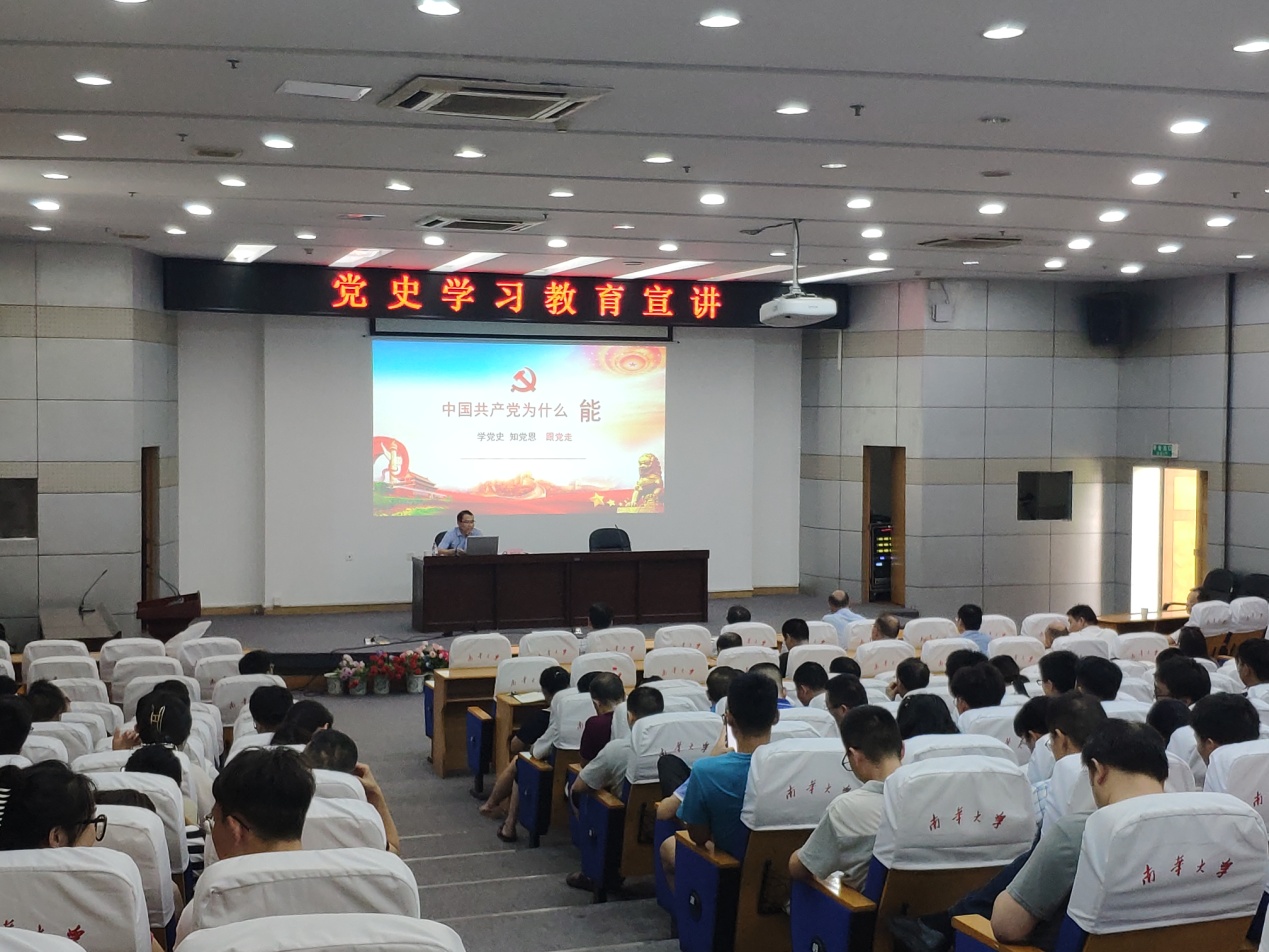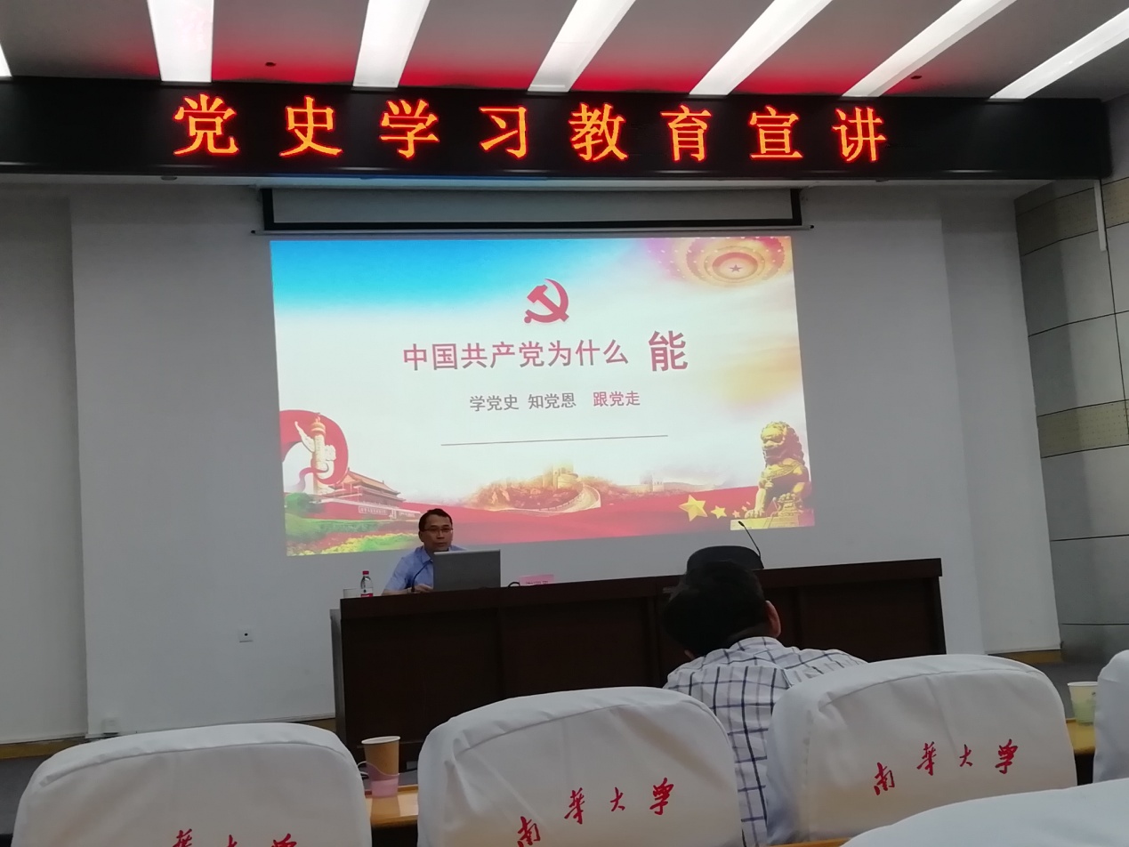 谢部长宣讲的主题是“中国共产党为什么能”。他回顾中国共产党的百年历史,从四个方面阐述中国共产党的丰功伟绩,即中国共产党改写近代中国外患的历史、铲除近千年匪患的历史、书写世界政党史、红军长征创造人类历史奇迹。谢部长讲述中国共产党的优秀品质,即科学的理论指导、坚定的理想信念、强大的组织优势、坚实的群众基础、彻底的自我革命
