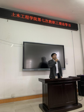 2021年10月29日下午,土木工程学院党委在学院四楼会议室开展了第七次理论学习。会议由党委书记石建军主持,全体教职工参加了学习并开展了讨论。