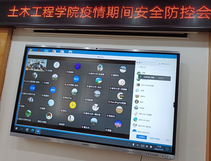 根据湘教通[2022]50号文件精神以及省教育厅党组书记、厅长夏智伦在3月19日《在全省教育系统新冠肺炎疫情防控工作紧急视频调度会上的讲话》要求,19日下午5点30分,学院按照学校疫情防控要求在学院三楼会议室召开了土木工程学院疫情期间安全防控全院大会。院领导、系室主任和党支部书记线下参加会议,其他教师线上参加。会议由学院党委书记石建军主持。
