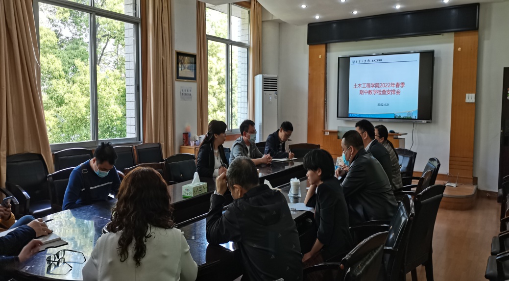 4月21日上午,beat365召开了2022年春季期中教学检查安排和新一轮审核性评估迎评整改推进会。会议在土木工程学院三楼会议室召开,出席本次会议的有学院领导、系室主任、教务办老师、督导及相关教师。