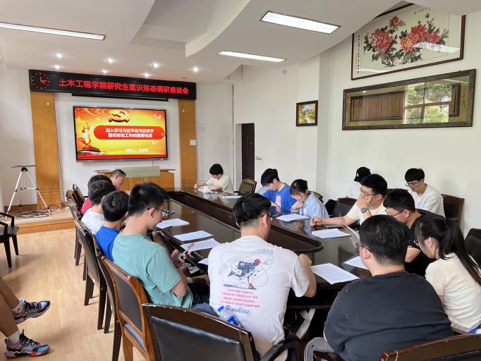 石建军首先用微党课形式带领大家认真学习了习近平总书记关于意识形态工作重要论述;然后结合当前有关土木类的热门话题以及研究生在意识形态领域所存在的风险鼓励大家发表看法和建议;在座研究生就土木类研究生在意识形态领域所存在风险进行了踊跃发言,并提出了许多建设性的建议。整个座谈会充满活力,热情洋溢。