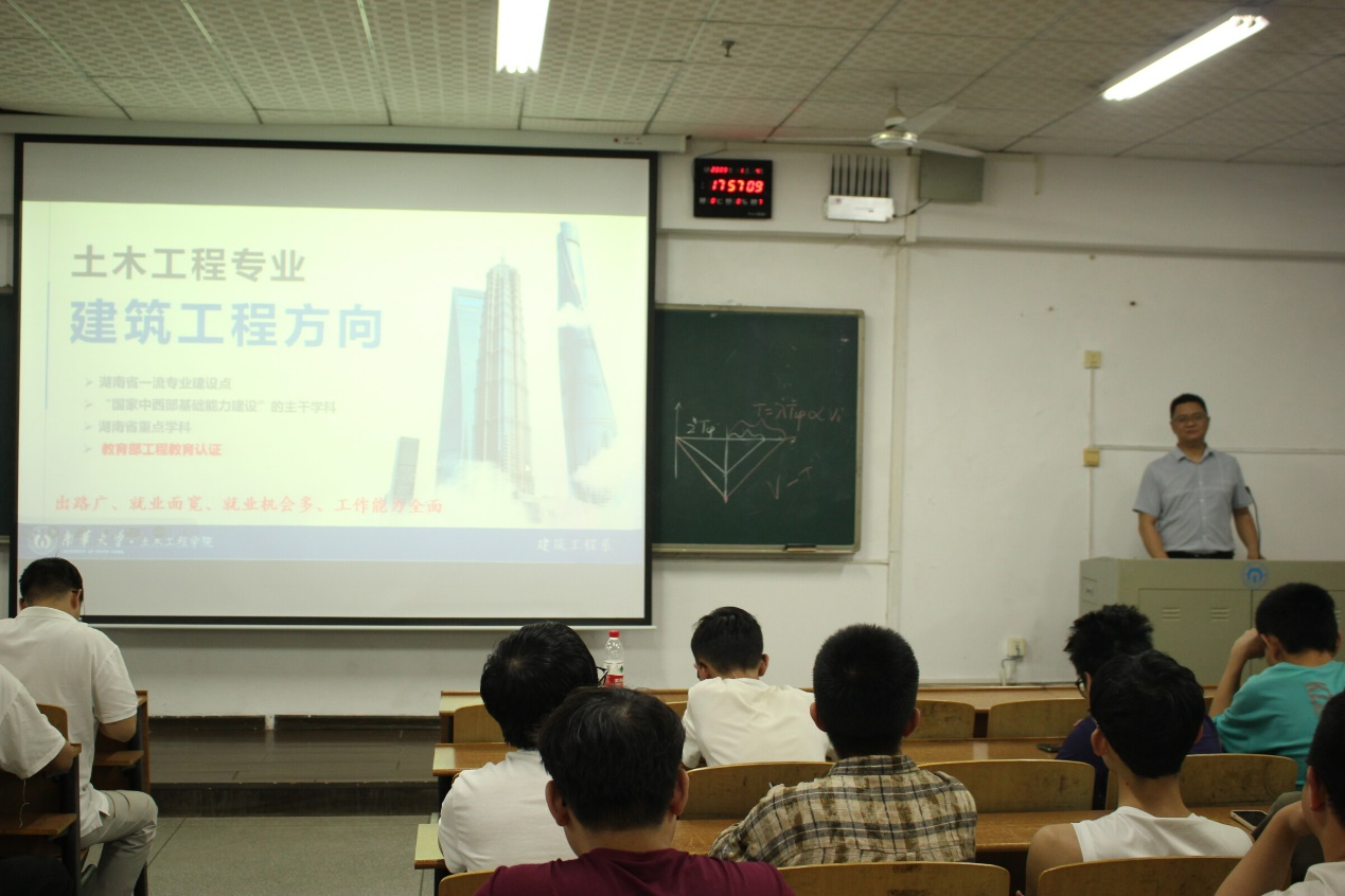 接着,各系室主任分别对各自专业的专业特点、培养方案、升学就业概况等做了详细讲解和说明。李仕友老师分别从历史沿革、师资队伍、学位点成果、实验条件、人才培养等五方面,对给排水科学与工程专业进行了详细的介绍;聂春龙老师从基本概念,工作内容,造价特色三个方面说明工程造价专业方向旨在培养专业技术人才;周亦良老师结合道路桥梁与渡河工程专业方向的专业属性、行业现状、学习内容,指出该专业方向具有广阔的就业前景;方耀楚老师结合建筑工程专业的特色说明该专业方向具有出路广、就业宽,就业机会多以及研究领域广泛的优势。