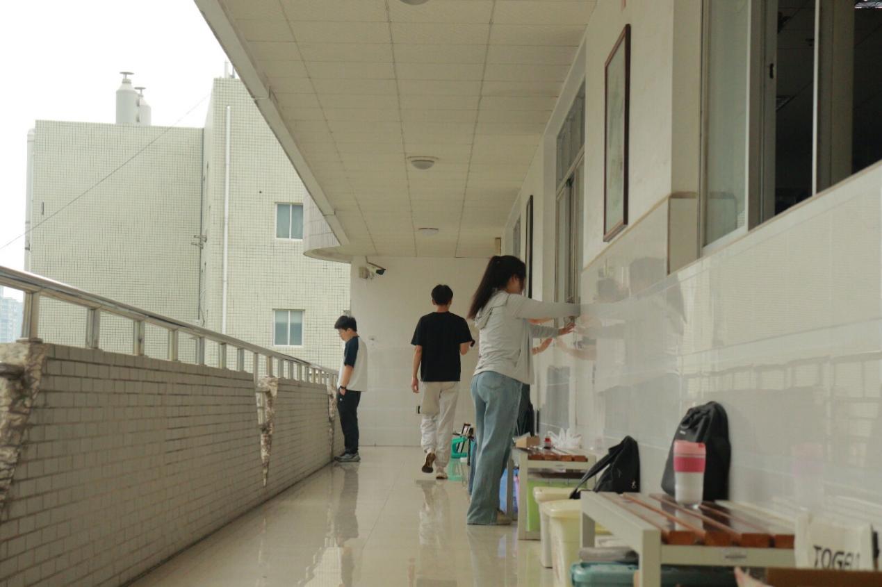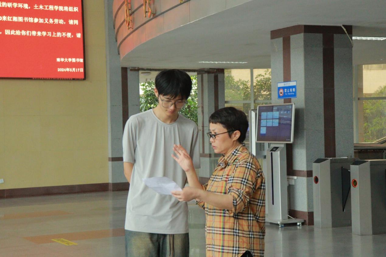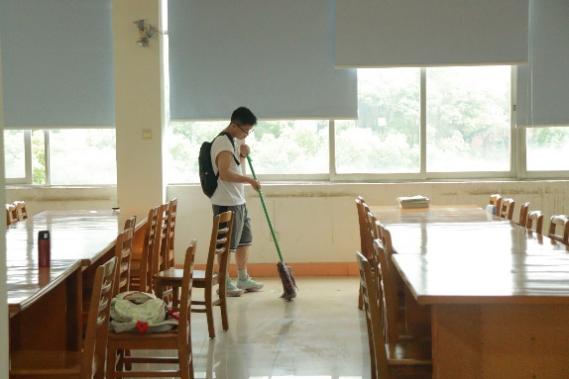 一部分同学负责整理图书,他们穿梭在一排排书架中,将书架上的图书书脊朝外,沿书架排成一条直线,经过整理的图书架变得整齐、美观。另一部分同学负责卫生清洁,他们拿起拖把和扫把,对地面进行细致入微的打扫,重现洁净的地面。大家分工协作、相互配合、认真细致,快速完成了整理打扫工作,充分体现出土木工程学院入党积极分子热爱劳动、传递奉献、团结协作的精神风貌,赢得了图书馆老师的认可和赞许。